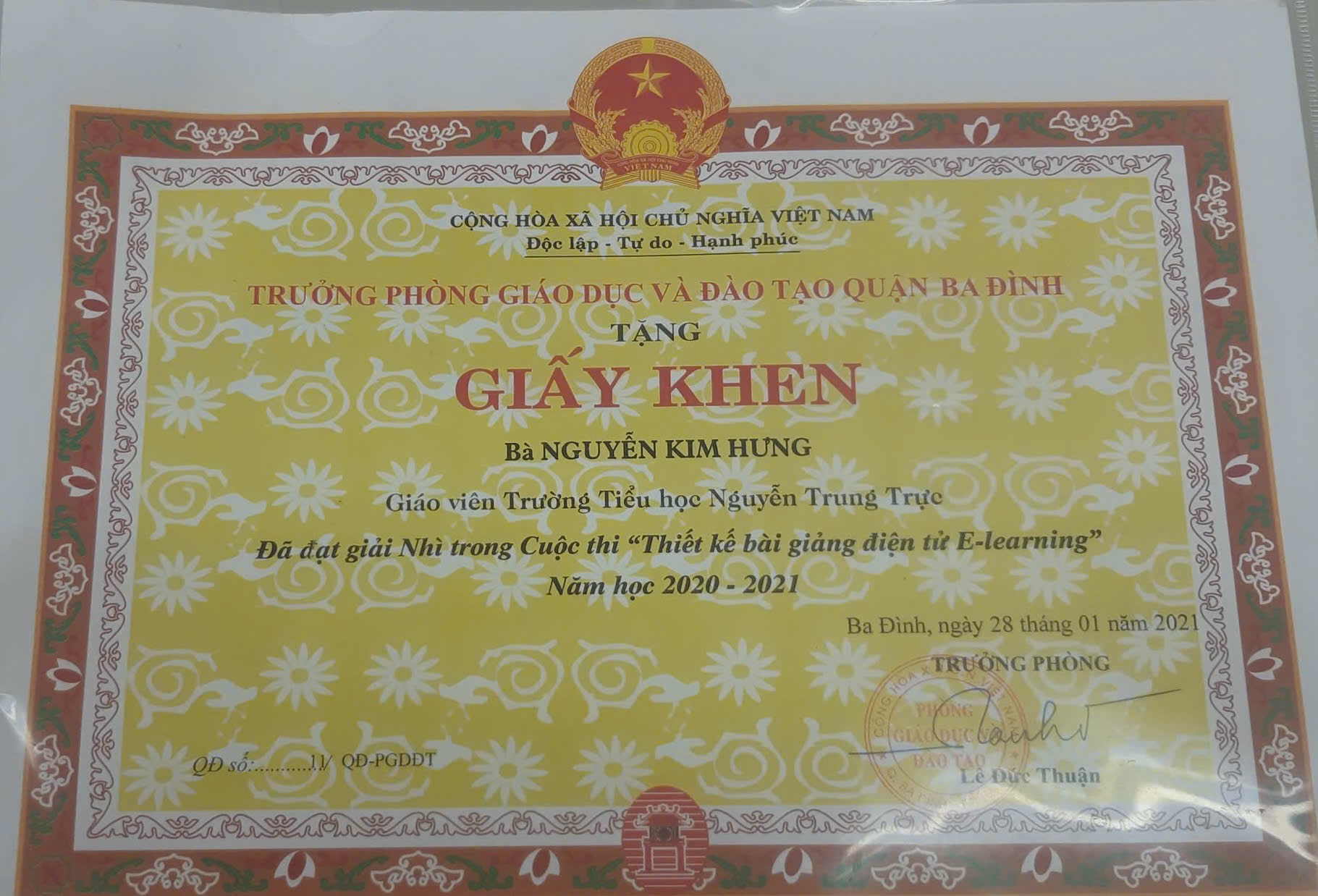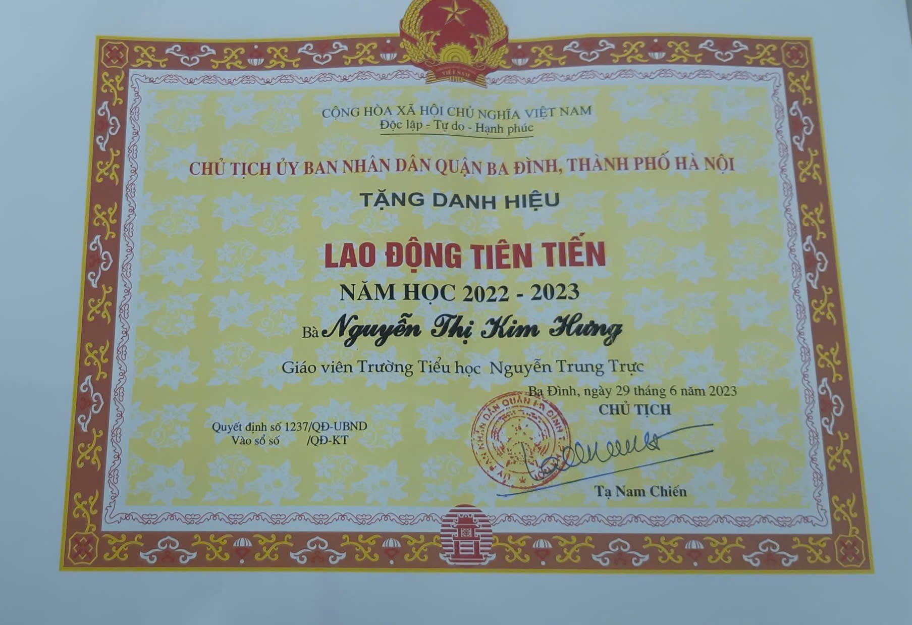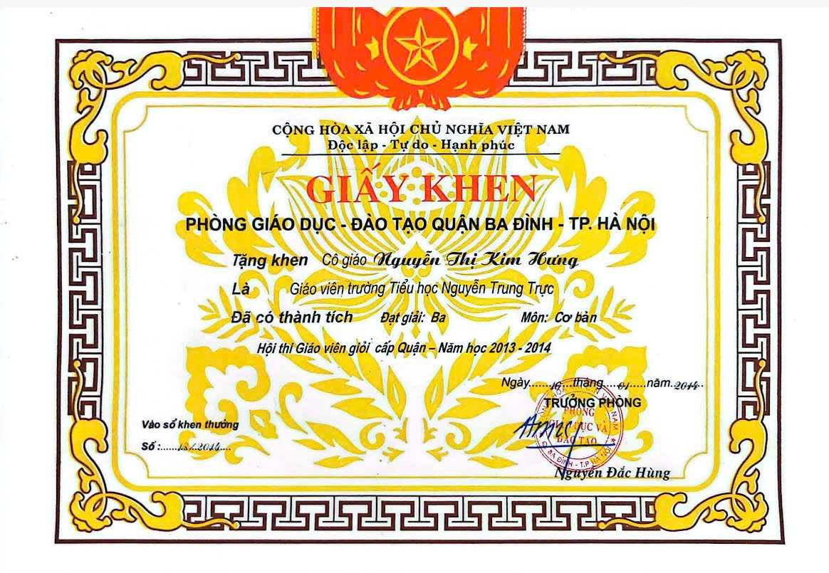 Một số thành tích của cô giáo Nguyễn Kim Hưng