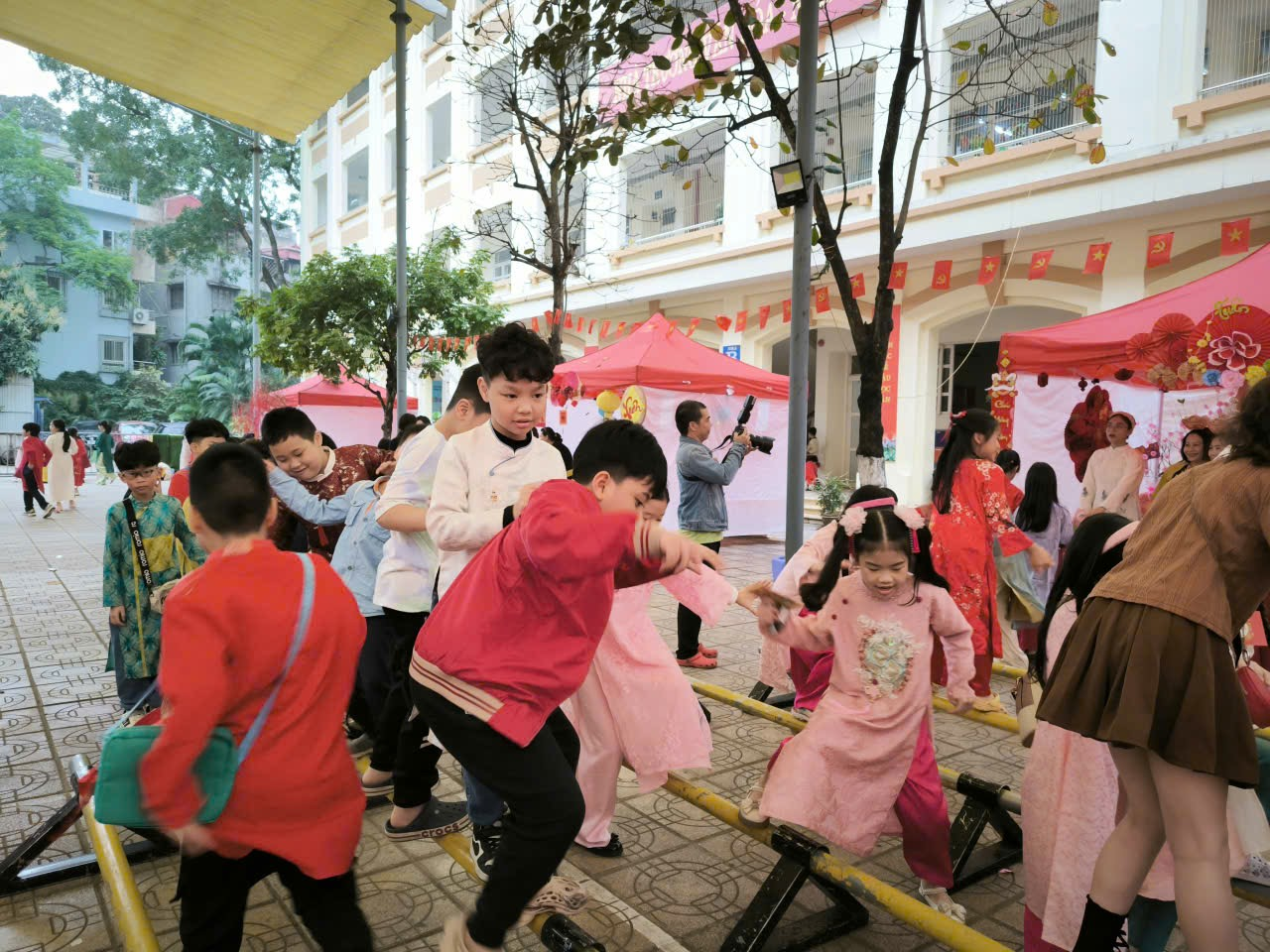 - Đi cà kheo, nhảy bao bố tại sân trường – tái hiện không khí trò chơi dân gian xưa, giúp học sinh thêm yêu những giá trị truyền thống giản dị mà bền vững.