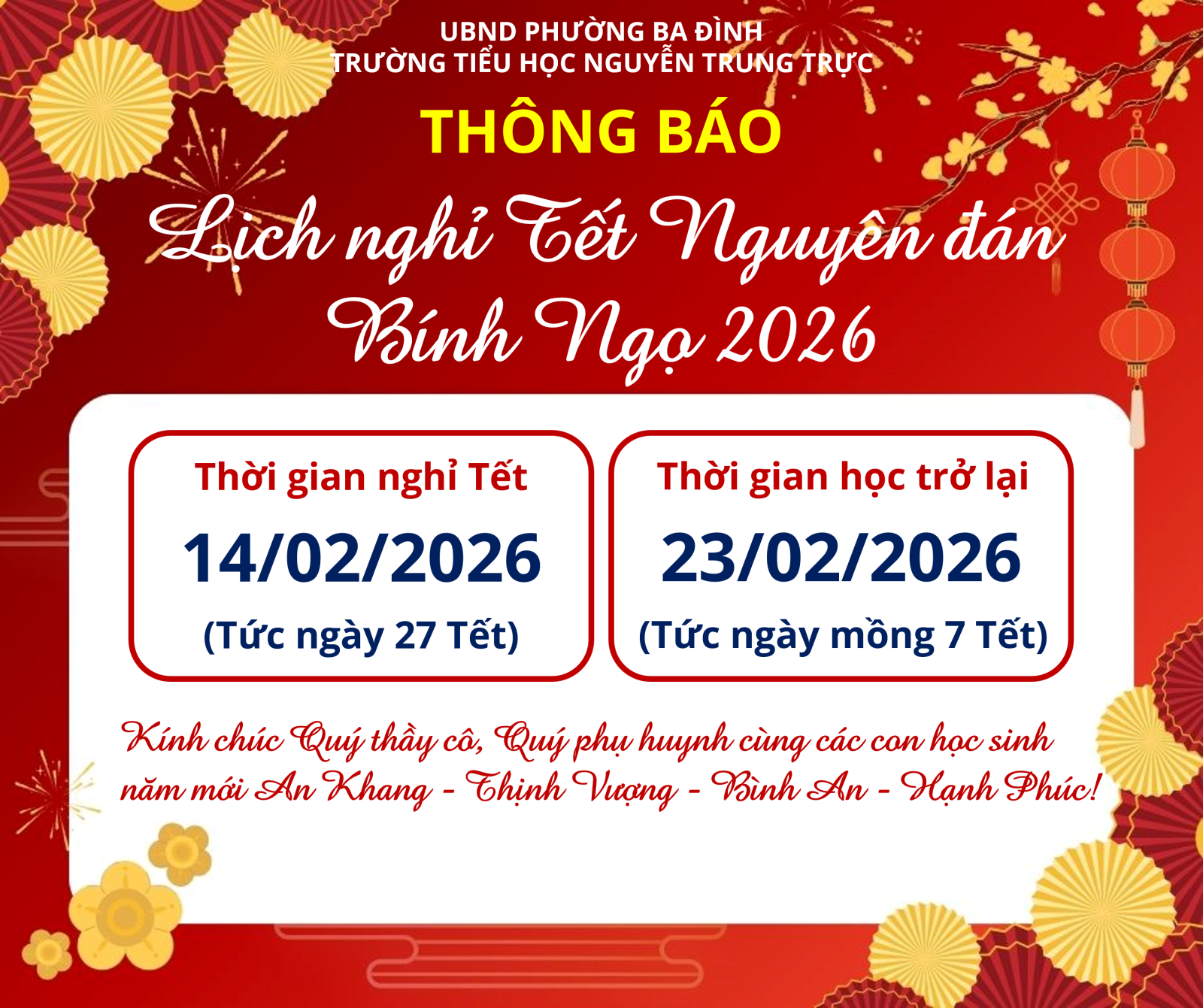 Thông báo lịch nghỉ Tết Nguyên đán 2026