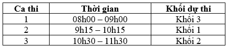 - Ca thi: Theo ca thi của Ban tổ chức (xem tại link thông báo tại đây)