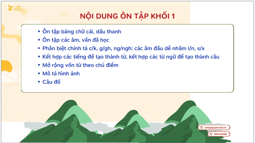 Nội dung ôn tập vòng sơ khảo cấp trường Sân chơi Trạng nguyên Tiếng Việt - Khối 1