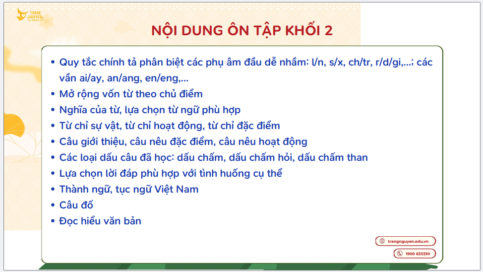 Nội dung ôn tập vòng sơ khảo cấp trường Sân chơi Trạng nguyên Tiếng Việt - Khối 2