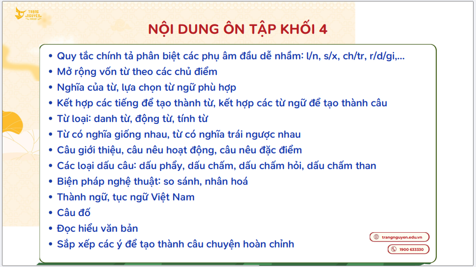Nội dung ôn tập vòng sơ khảo cấp trường Sân chơi Trạng nguyên Tiếng Việt - Khối 4