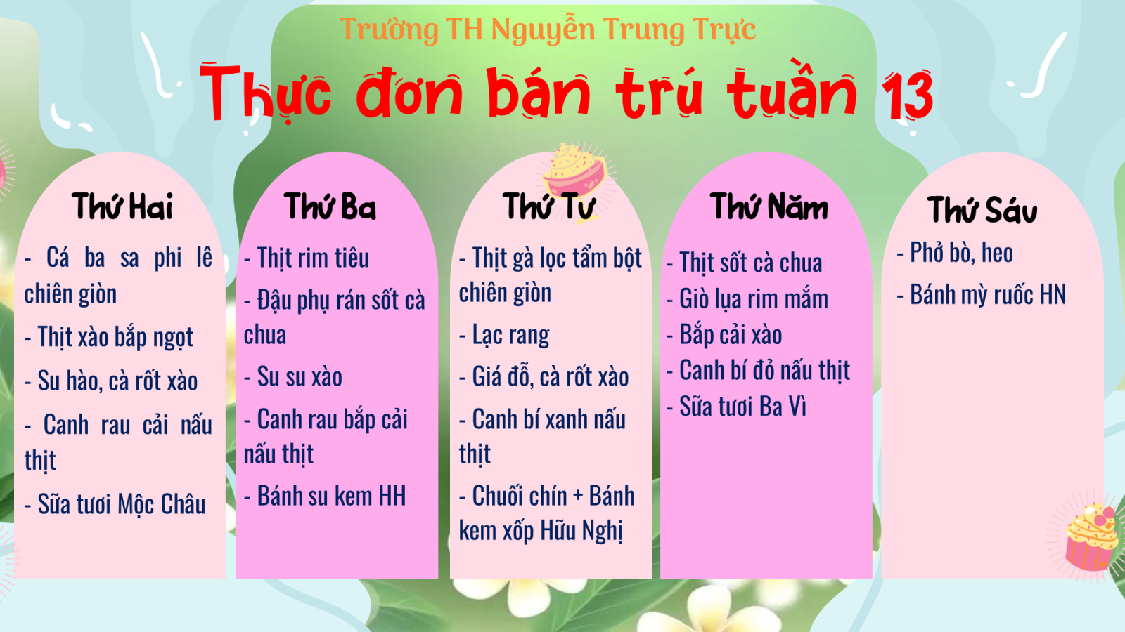 Thực đơn bán trú tuần 13 năm học 2025 - 2026
