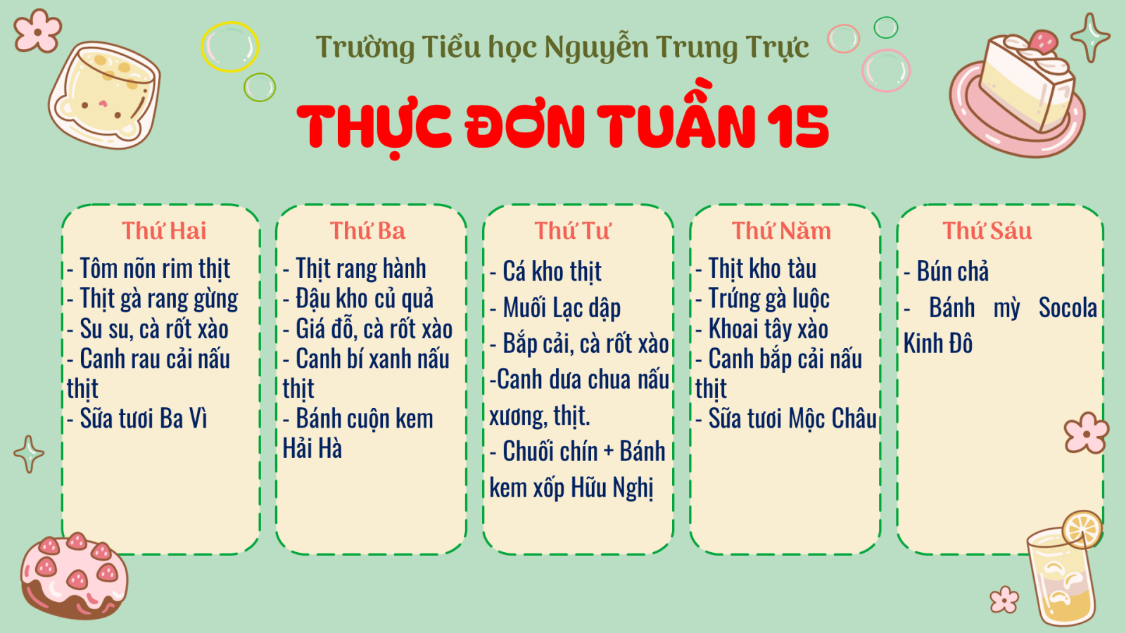 Thực đơn bán trú tuần 15 năm học 2025 - 2026