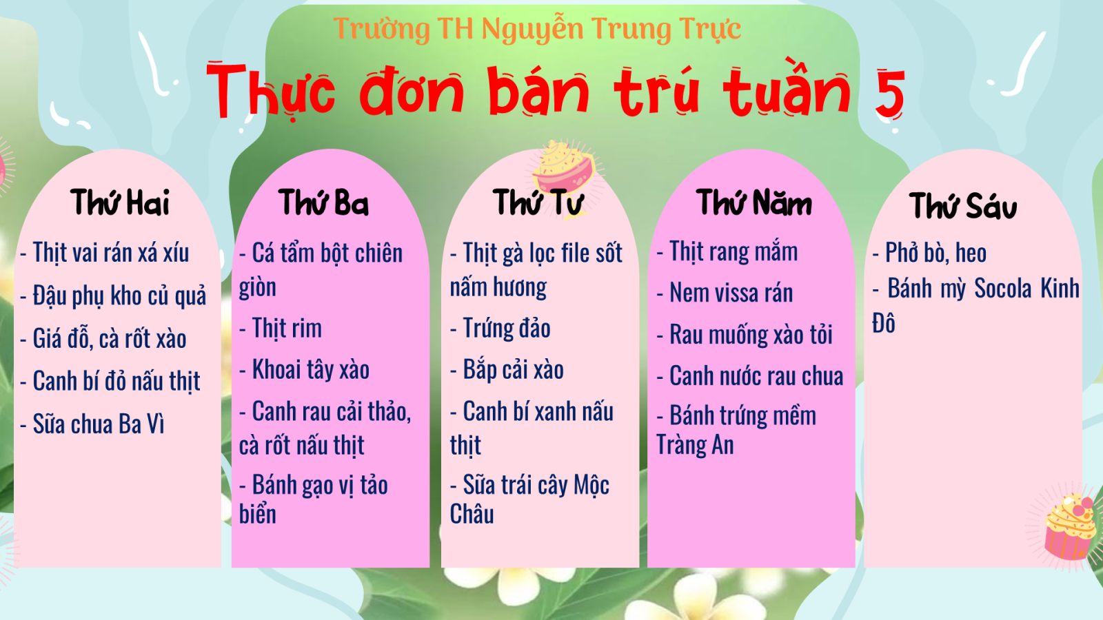 Thực đơn bán trú tuần 22 (Từ ngày 9/2 đến13/2/2026)