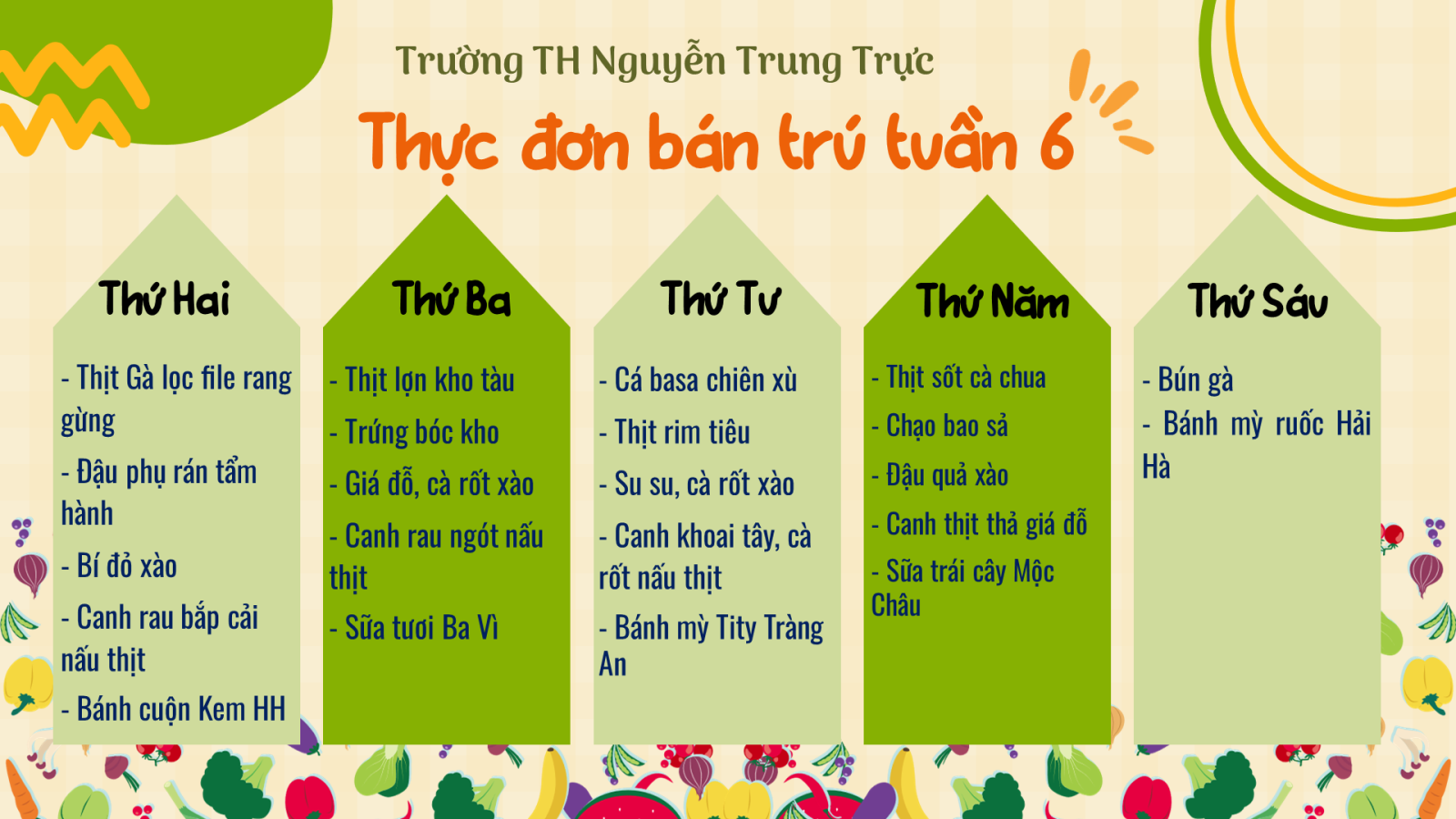 Thực đơn bán trú tuần 6 năm học 2025 - 2026