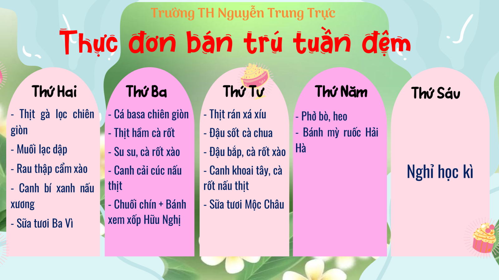 Thực đơn bán trú tuần 22 (Từ ngày 9/2 đến13/2/2026)