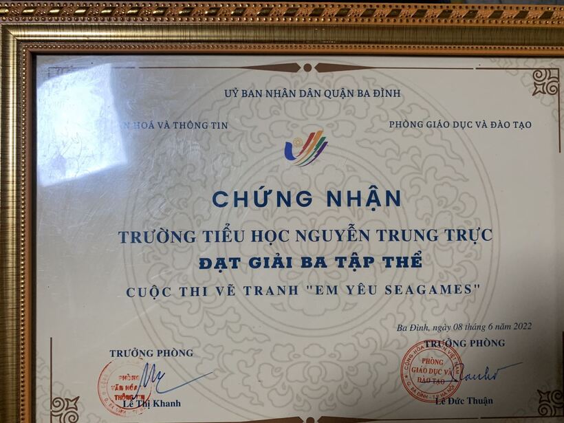 Ngày 6 tháng 7 năm 2022, cô Phạm Tố Uyển - Hiệu trưởng nhà trường đã thay mặt các con học sinh nhận giải thưởng do UBND quận Ba Đình, Phòng Giáo dục và Đào tạo Ba Đình, Phòng Văn hóa và thông tin quận Ba Đình trao tặng.
