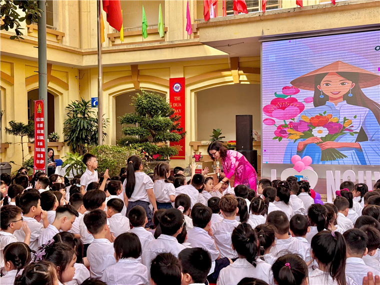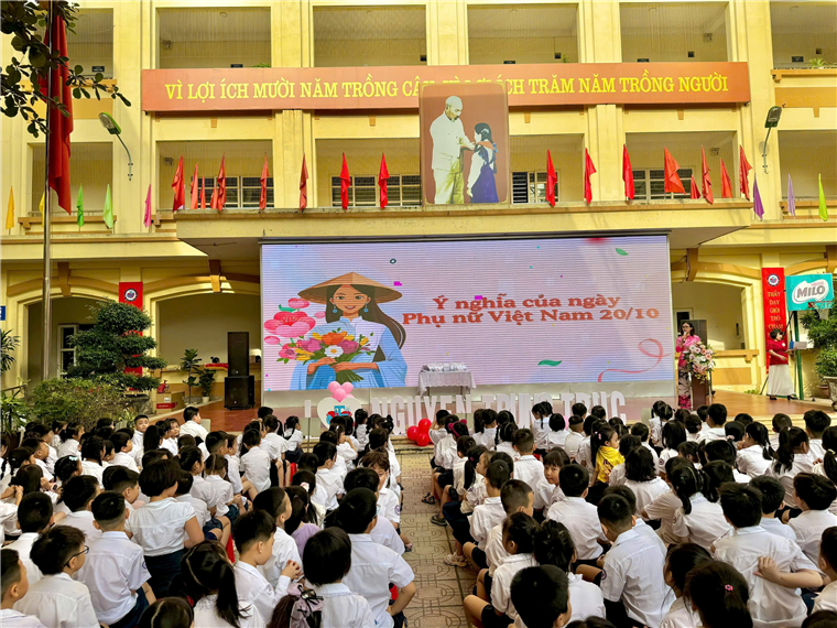 Tại buổi Lễ cô Lê Thị Kim Cúc đã có bài phát biểu ôn lại truyền thống của ngày thành lập Hội liên hiệp Phụ nữ Việt Nam 20/10. Giúp các bạn học sinh hiểu thêm về ý nghĩa của ngày 20/10. Nhân dịp này, các con có cơ hội thể hiện tình yêu thương, sự biết ơn sâu sắc đến bà, đến mẹ, đến cô giáo của mình.