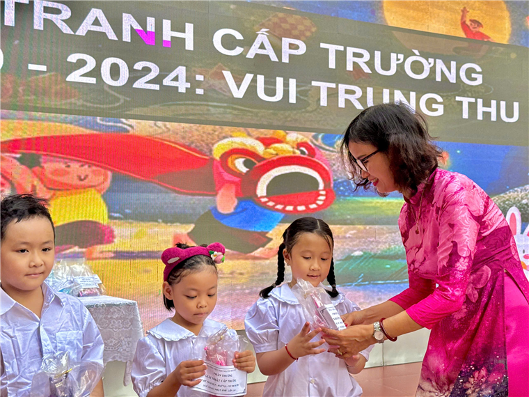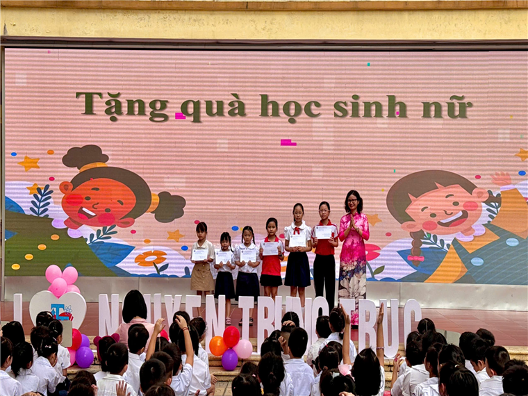 Cũng tại buổi lễ, cô Lê Thị Kim Cúc thay mặt nhà trường tặng những món quà ý nghĩa tới các bạn học sinh nữ có hoàn cảnh khó khăn cố gắng trong học tập như một lời động viên, chúc con các luôn chăm ngoan, học giỏi