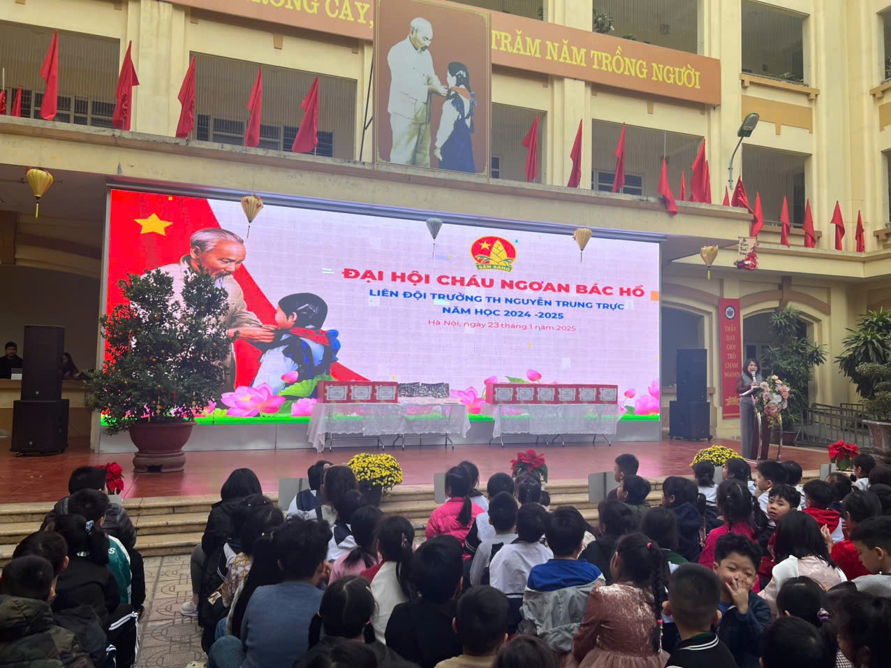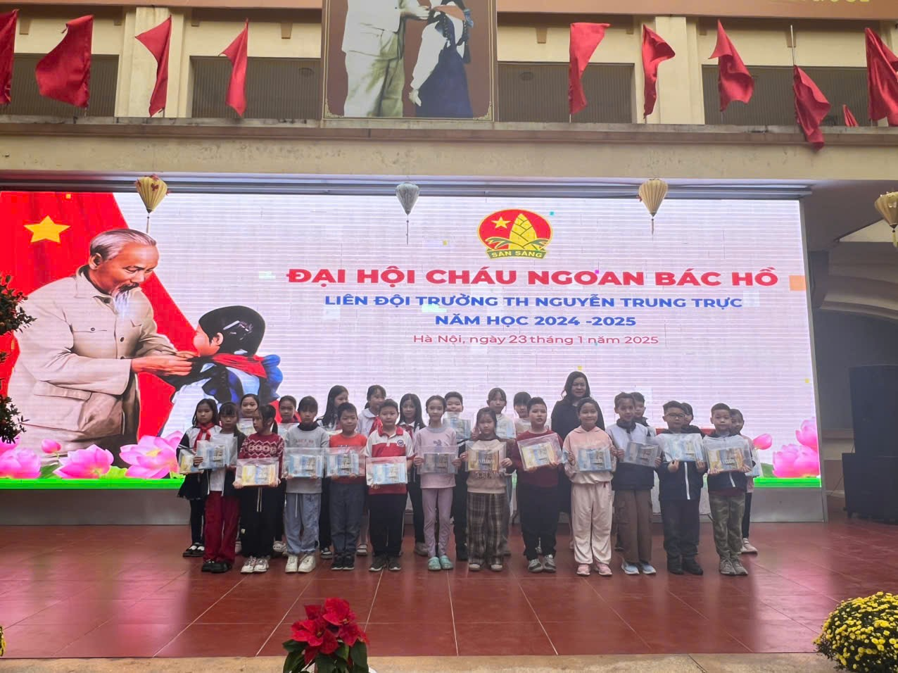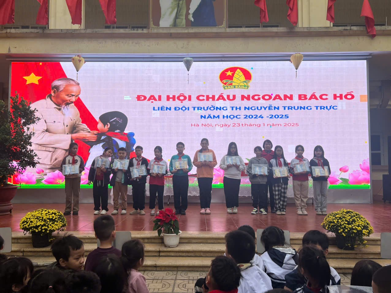 Nhằm ghi nhận và tuyên dương những đội viên, nhi đồng có thành tích xuất sắc trong học tập, rèn luyện và phong trào Đội, sáng ngày 23/1/2025, Liên đội trường Tiểu học Nguyễn Trung Trực long trọng tổ chức Đại hội Cháu ngoan Bác Hồ năm học 2024 - 2025.