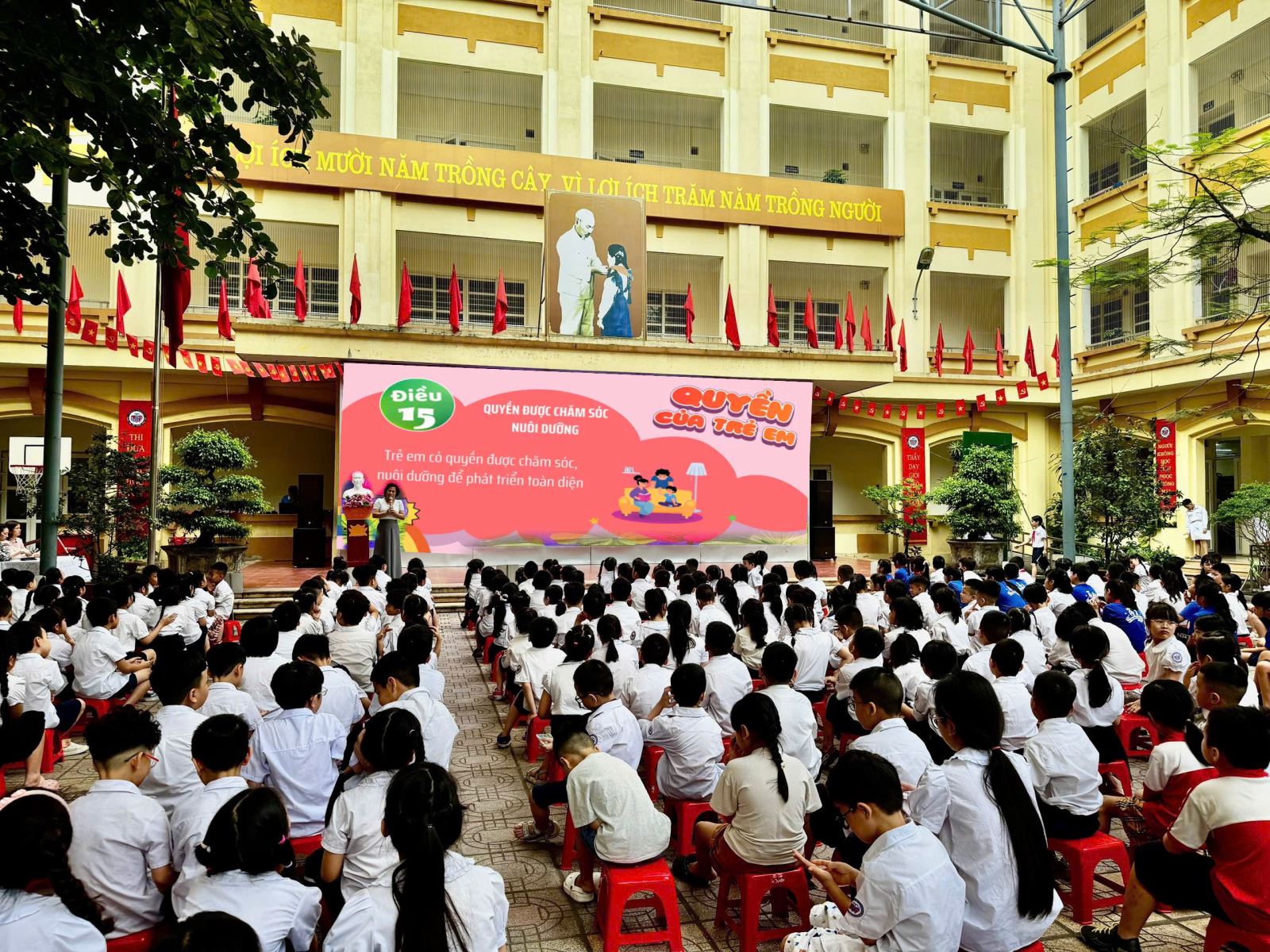 Tại chương trình, cô Phạm Thị Thu Phương - Tổng phụ trách đã phổ biến những nội dung cơ bản của Luật trẻ em thông qua hình thức trả lời câu hỏi trắc nghiệm, đố vui có thưởng giữa các khối học sinh. Đây là những chủ đề hết sức gần gũi và có ảnh hưởng trực tiếp tới lứa tuổi học sinh. Thông qua hoạt động này, đã tạo ra một sân chơi bổ ích, thú vị, giúp các em học sinh tìm hiểu sâu, kỹ về các quy định của pháp luật và trang bị cho mình những kỹ năng sống cần thiết trong tương lai.