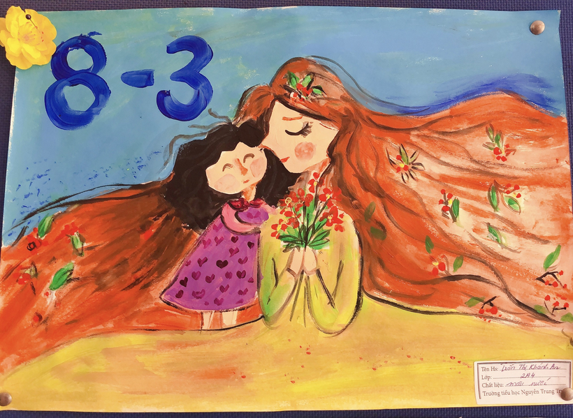 Để chào mừng ngày Quốc tế Phụ nữ 8 tháng 3, Liên đội trường Tiểu học Nguyễn Trung Trực đã phát cộng cuộc thi vẽ tranh với chủ đề "Người phụ nữ thân yêu".