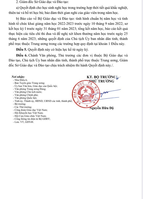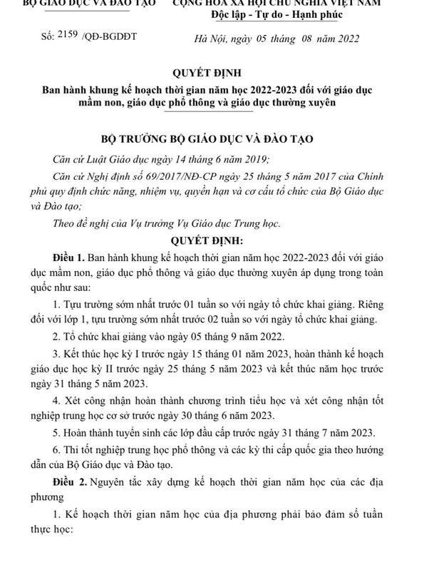 Bộ giáo dục ban hành quyết định về khung thời gian năm học 2022 - 2023