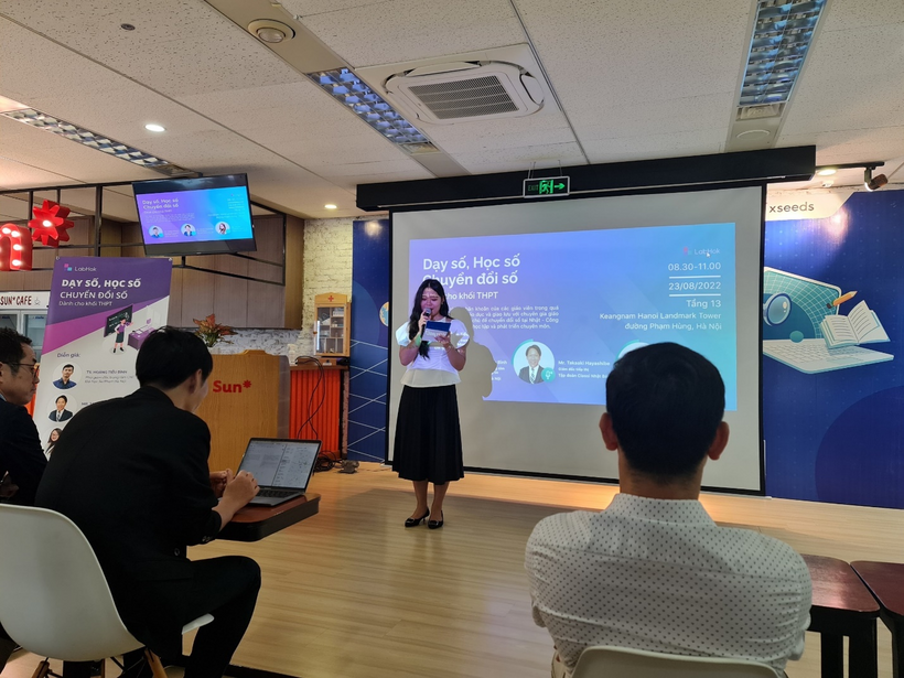 Tại buổi Hội thảo, TS Hoàng Tiểu Bình - Phó GĐ Trung tâm CNTT, Đại học Sư phạm, ĐHQG đã chia sẻ những khó khăn vướng mắc của giáo viên và các cơ sở giáo dục trong quá trình chuyển đổi số, các giải pháp khắc phục khó khăn, ứng dụng hiệu quả chuyển đổi số trong GD; đồng thời các đại biểu cũng được giao lưu với chuyên gia giáo dục đến từ Nhật Bản về chủ đề chuyển đổi số tại Nhật- Công nghệ thay đổi quá trình học tập và phát triển chuyên môn.