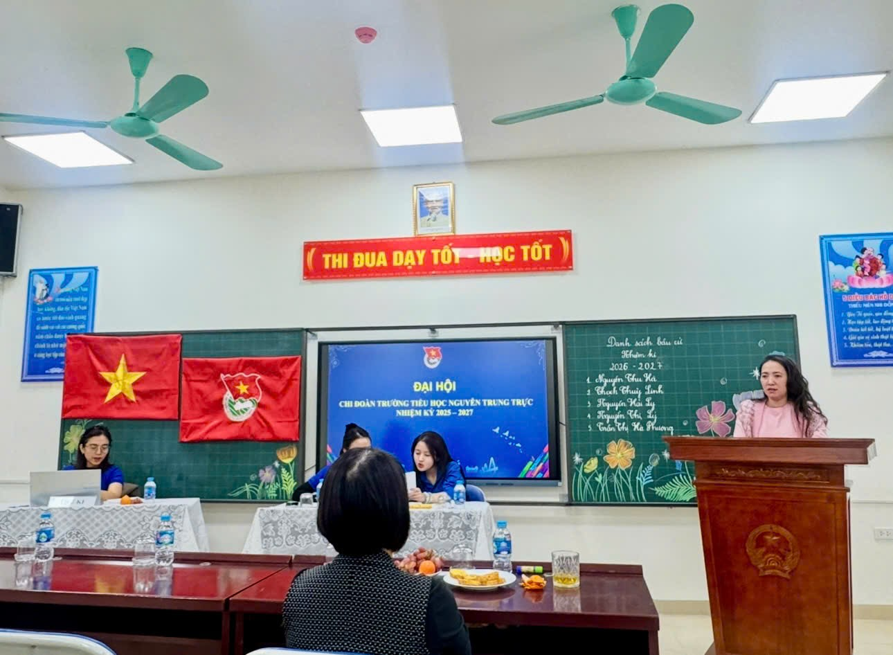 Các đồng chí trong Ban Chấp hành mới, đứng tại bục nhận hoa, đã bày tỏ sự cảm ơn sâu sắc đến sự tin tưởng của Đại hội và hứa quyết tâm thực hiện thắng lợi các mục tiêu đã đề ra trong Nghị quyết. Tiêu biểu là đồng chí Thạch Thùy Linh, tân Bí thư Chi đoàn, cam kết sẽ nỗ lực phát huy vai trò xung kích, tình nguyện, sáng tạo, đoàn kết cùng tập thể đoàn viên xây dựng Chi đoàn ngày càng vững mạnh, góp phần vào sự phát triển chung của Trường Tiểu học Nguyễn Trực.