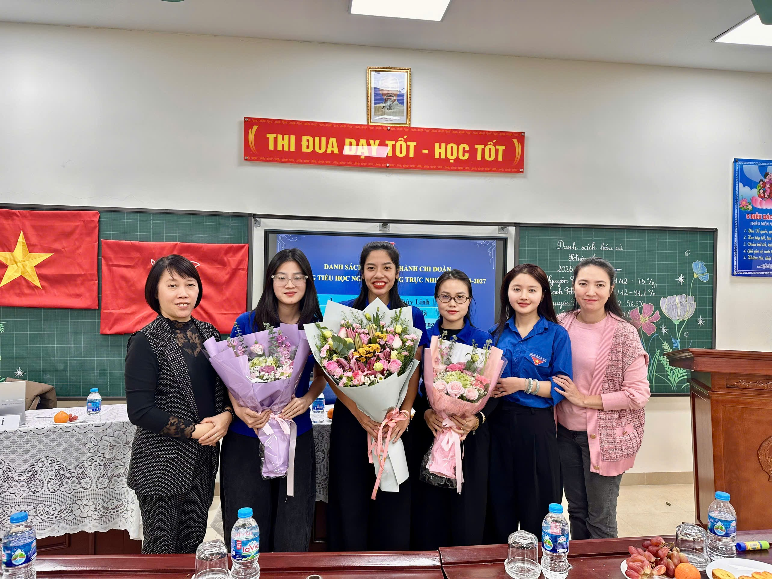 Ngay sau khi kết quả được công bố, đại diện Chi ủy là bà Lương Thúy Hạnh và bà Nguyễn Thị Thanh Hà đã lên tặng hoa chúc mừng Ban Chấp hành Chi đoàn nhiệm kỳ mới.