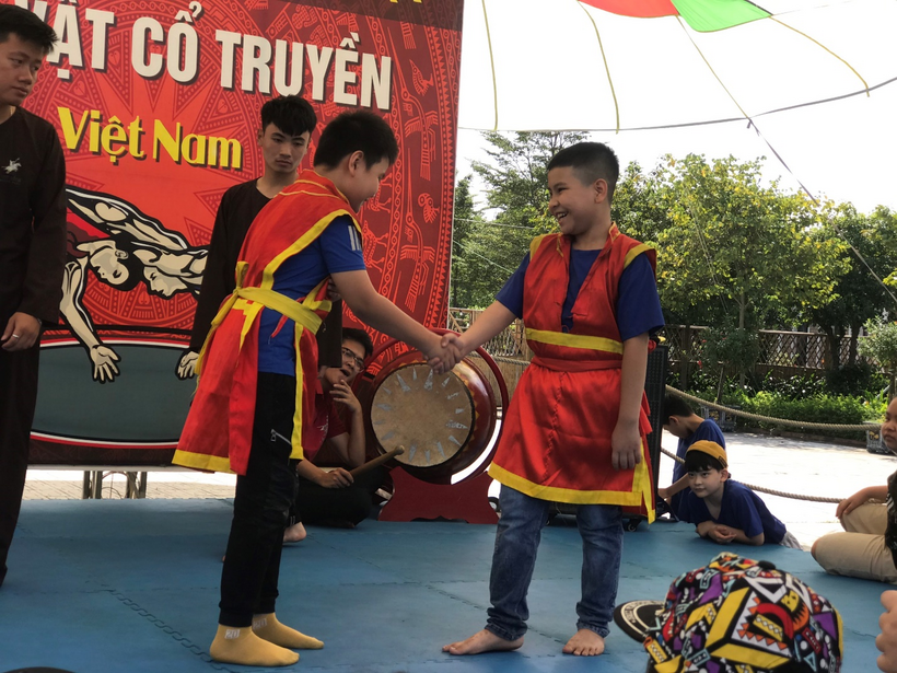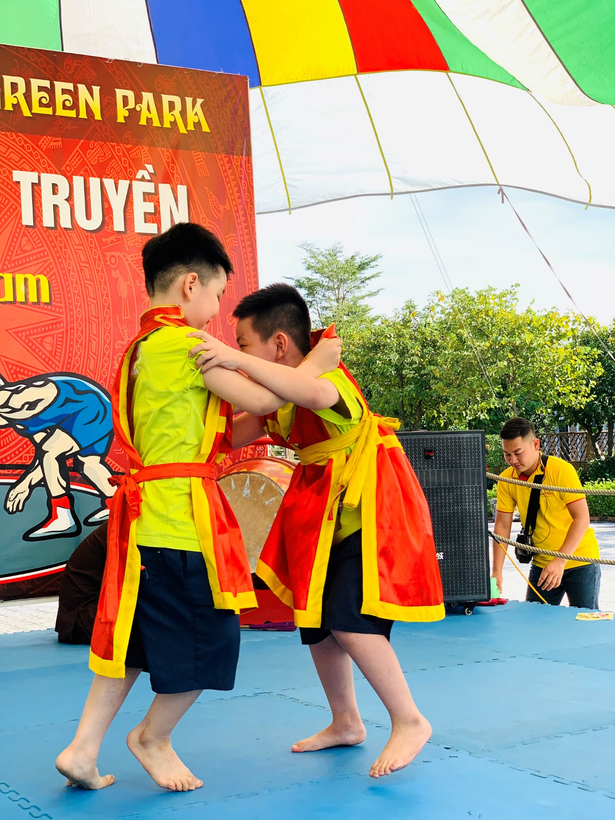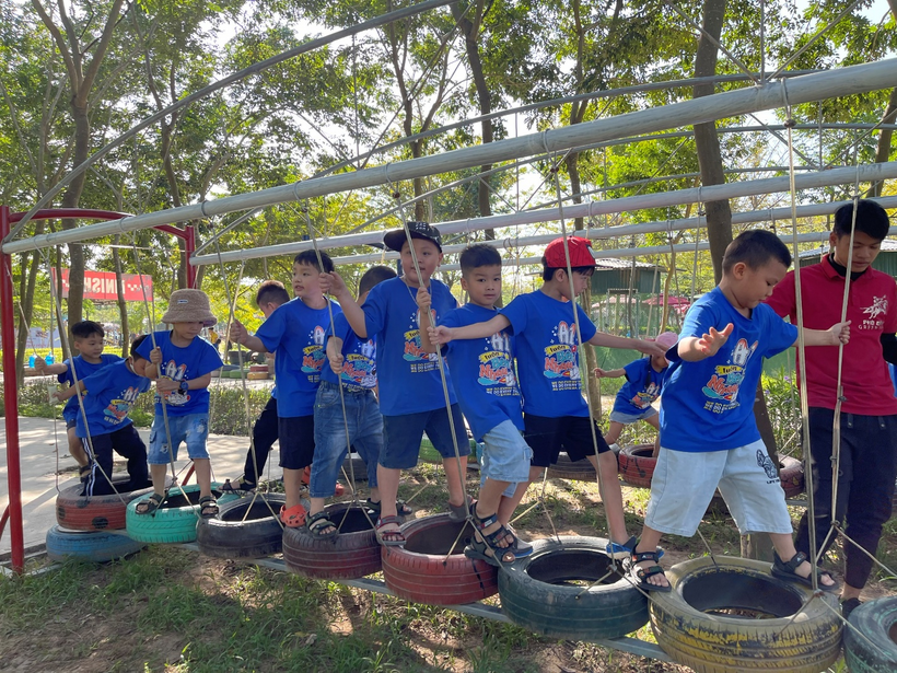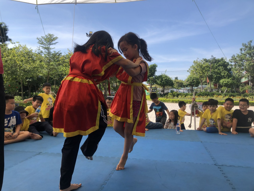 Tại đây, các con được trải nghiệm những hoạt động thú vị và bổ ích, được tham gia vào các trò chơi gắn kết, các thử thách liên hoàn, trò chơi bóng đá, thưởng thức cơm nắm Thánh Gióng, tô vẽ tranh dân gian...