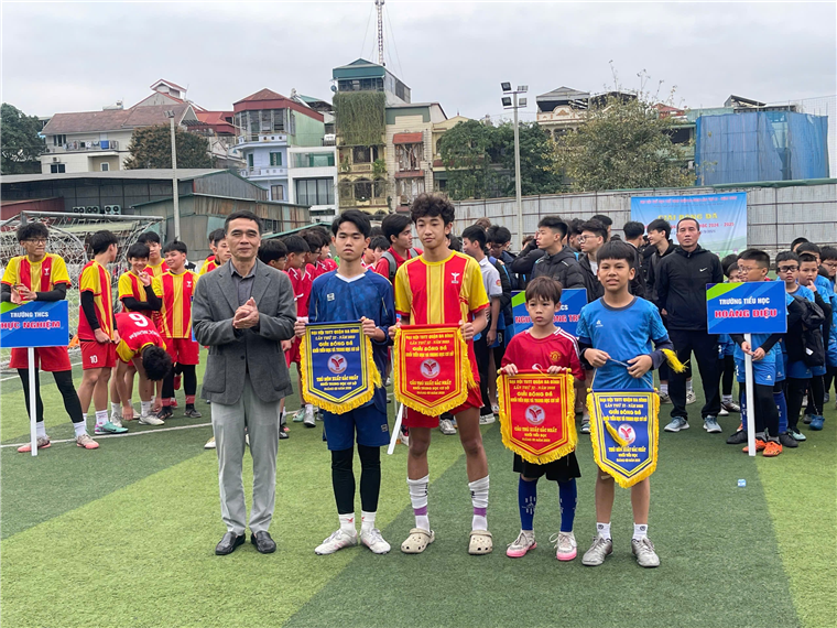 Con Lý Gia Bảo nhận danh hiệu Cầu thủ xuất sắc nhất giải khối Tiểu học từ Ban Tổ chức