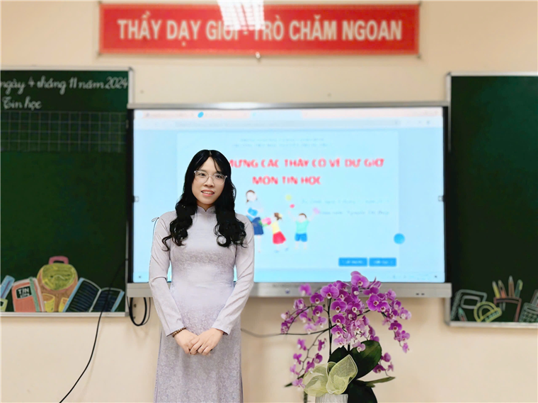 Ở trên lớp, cô giáo Nguyễn Thị Điệp không chỉ là một giáo viên tâm huyết, mà còn là tấm gương sáng về sự sáng tạo, kiên trì và tận tụy trong nghề. Với lòng yêu nghề và sự am hiểu sâu sắc về môn Tin học, cô đã luôn tìm cách cải tiến phương pháp giảng dạy, áp dụng công nghệ vào từng bài giảng để làm cho học sinh không chỉ hiểu mà còn yêu thích môn học này.