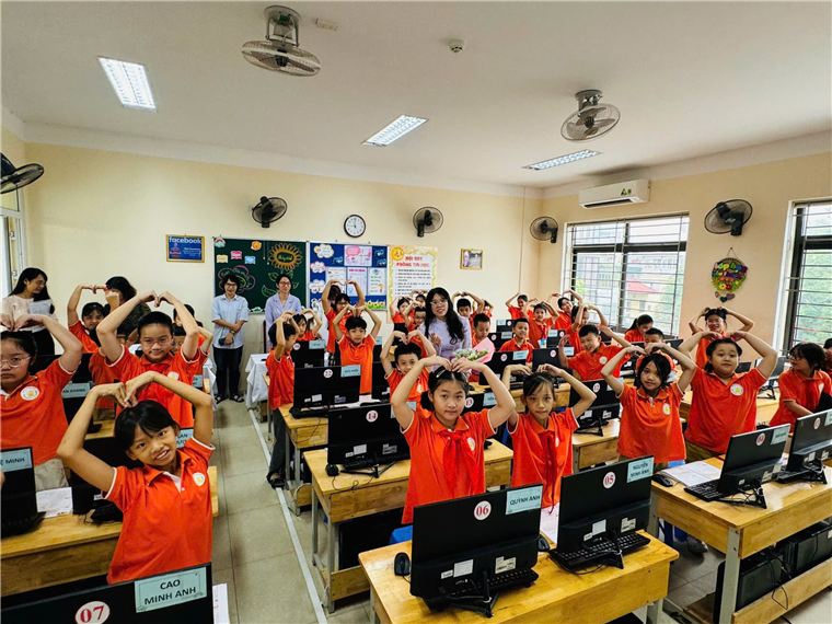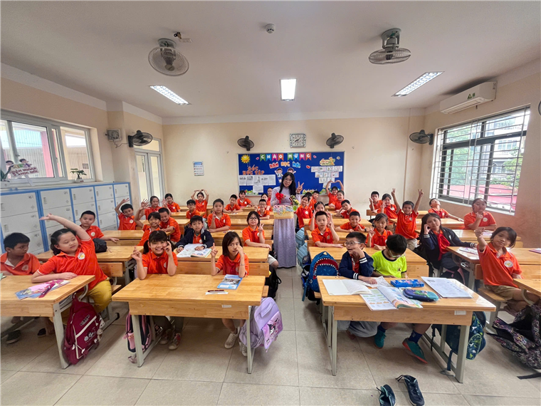 Cô Nguyễn Thị Điệp và các bạn học sinh lớp 4B trường Tiểu học Hoàng Hoa Thám