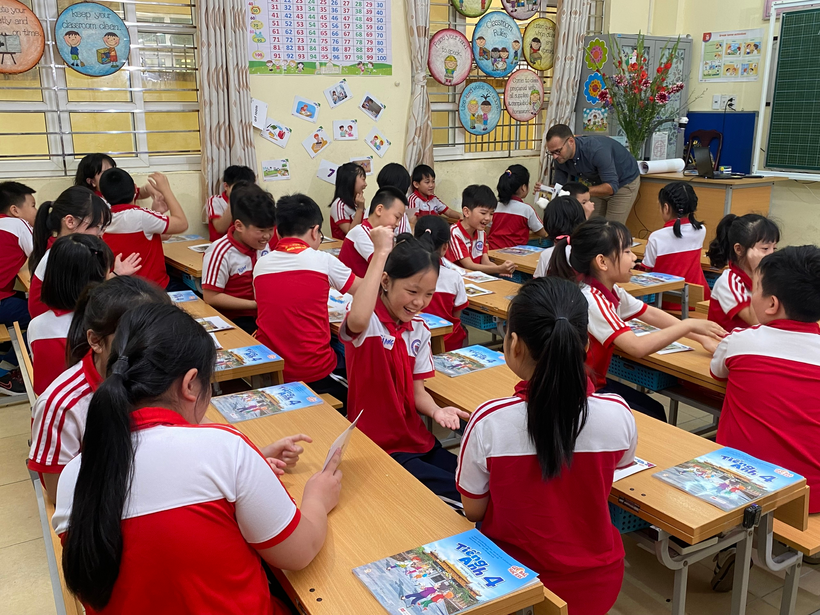 Với kinh nghiệm là một chuyên gia đào tạo hàng đầu về phương pháp giảng dạy tiếng Anh tiểu học của Macmillan, Ông Blue đã áp dụng nhiều kĩ thuật giảng dạy tiên tiến, đa dạng, sáng tạo, hấp dẫn để triển khai hai tiết dạy từ vựng và ngữ pháp trong Unit 5 – Tiếng Anh 4 – Global Success nhằm phát huy tính chủ động, sáng tạo của học sinh trong quá trình tự khám phá và lĩnh hội kiến thức ngôn ngữ, đồng thời phát triển các kĩ năng học tập tự chủ, phối hợp làm việc nhóm trong các hoạt động thực hành và vận dụng ngôn ngữ.