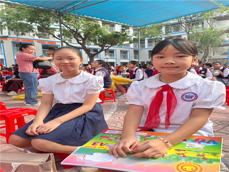 Hình ảnh bạn Nguyễn Tường Vy và bạn Hà Ngọc Ánh tham dự lễ khai mạc hội thi