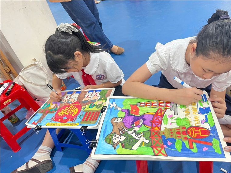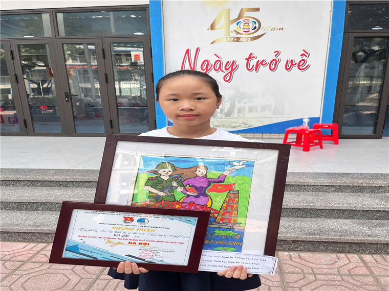 Thực hiện chương trình công tác Đoàn và phong trào thanh thiếu nhi quận Ba Đình năm 2024. Bạn Hà Ngọc Ánh lớp 5A1 và bạn Nguyễn Tường Vy lớp 4A4 của Trường Tiểu học Nguyễn Trung Trực đã vô cùng vinh dự khi được tham hội thi vẽ tranh “Tôi yêu Hà Nội” với chủ đề “Hà Nội thành phố vì hòa bình”.