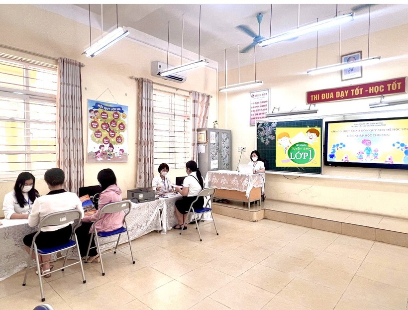 Hình ảnh ngày đầu trong tuyển sinh trực tuyến lớp 1 năm học 2022 - 2023