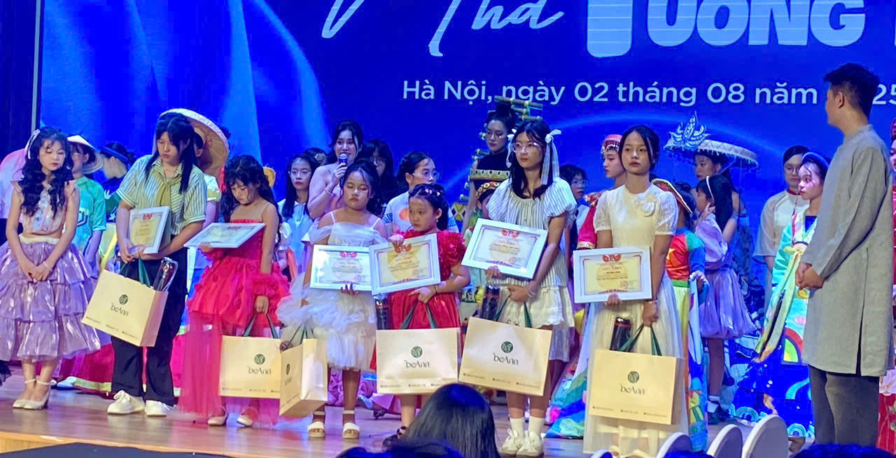 Đặc biệt, tại lễ trao giải, em Lê Thanh Hà đã có màn trình diễn ấn tượng cùng mẫu nhí trong trang phục do chính em thiết kế – một sản phẩm độc đáo, nổi bật cả về ý tưởng lẫn tính thẩm mỹ.
