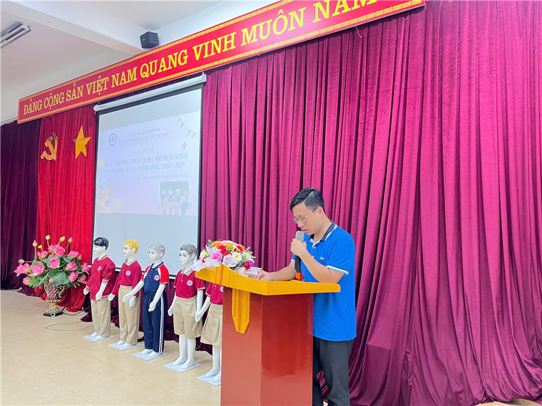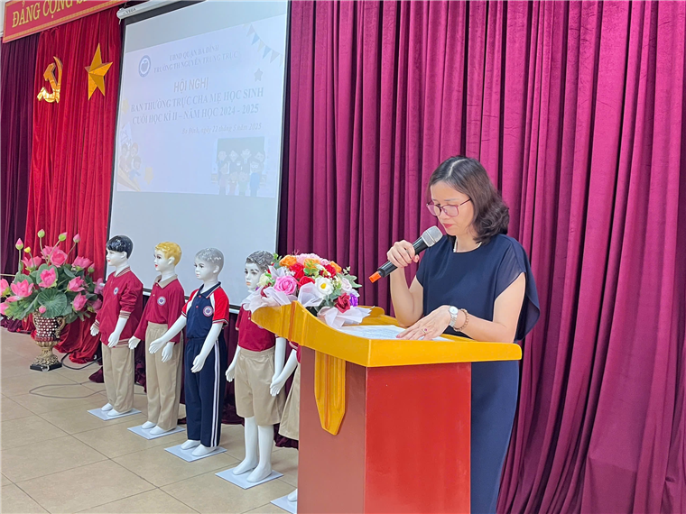 Tại hội nghị, cô Lê Thị Kim Cúc – Bí thư Chi bộ, Hiệu trưởng nhà trường – đã trình bày báo cáo tổng kết hoạt động giáo dục năm học 2024 – 2025. Báo cáo ghi nhận những nỗ lực và thành tích đáng khích lệ của tập thể cán bộ, giáo viên, nhân viên và học sinh toàn trường. Các chỉ số về học lực, hạnh kiểm, hoạt động trải nghiệm và phong trào thi đua đều có nhiều chuyển biến tích cực. Đặc biệt, sự đồng hành, hỗ trợ sát sao từ phía phụ huynh học sinh đã góp phần quan trọng vào những kết quả đạt được.