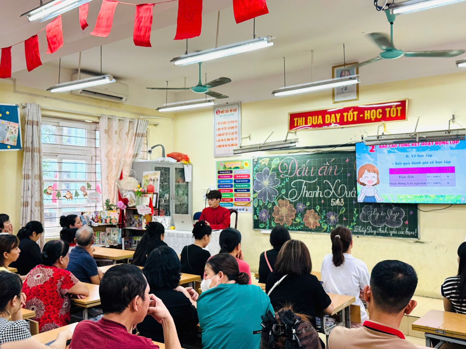 Tại mỗi lớp, giáo viên chủ nhiệm đã báo cáo tổng kết các hoạt động và thành tích nổi bật của nhà trường, đồng thời thông tin chi tiết về tình hình học tập, rèn luyện của từng học sinh.