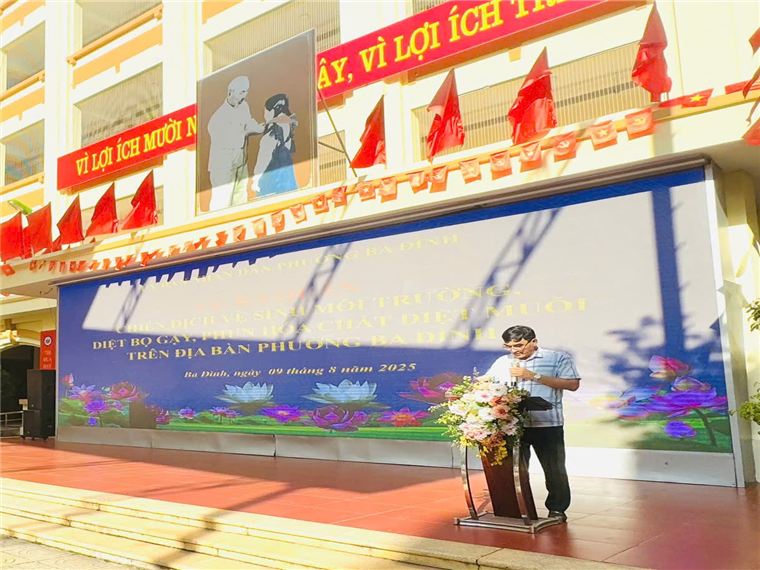 Đại diện các đồng chí lãnh đạo UBND phường Ba Đình có Ông Nguyễn Dân Huy – Phó Chủ tịch UBND phường; Ông Lã Ngọc Sang – Trưởng phòng Văn hoá – Xã hội; Ông Tiêu Ngọc Chiến – Trưởng Trạm Y tế phường đã đến dự và phát biểu khai mạc, định hướng nhiệm vụ, phát động các ban ngành đoàn thể, trường học và toàn thể nhân dân hưởng ứng chiến dịch.