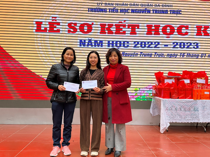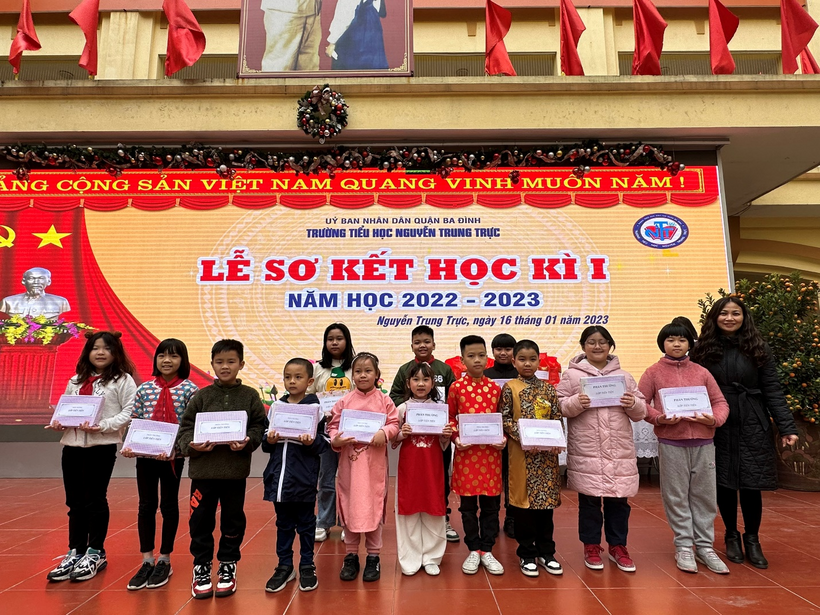 Cũng trong buổi lễ, nhà trường đã trao những món quà Tết ấm áp cho 23 con học sinh có hoàn cảnh khó khăn vươn lên trong học tập của nhà trường.