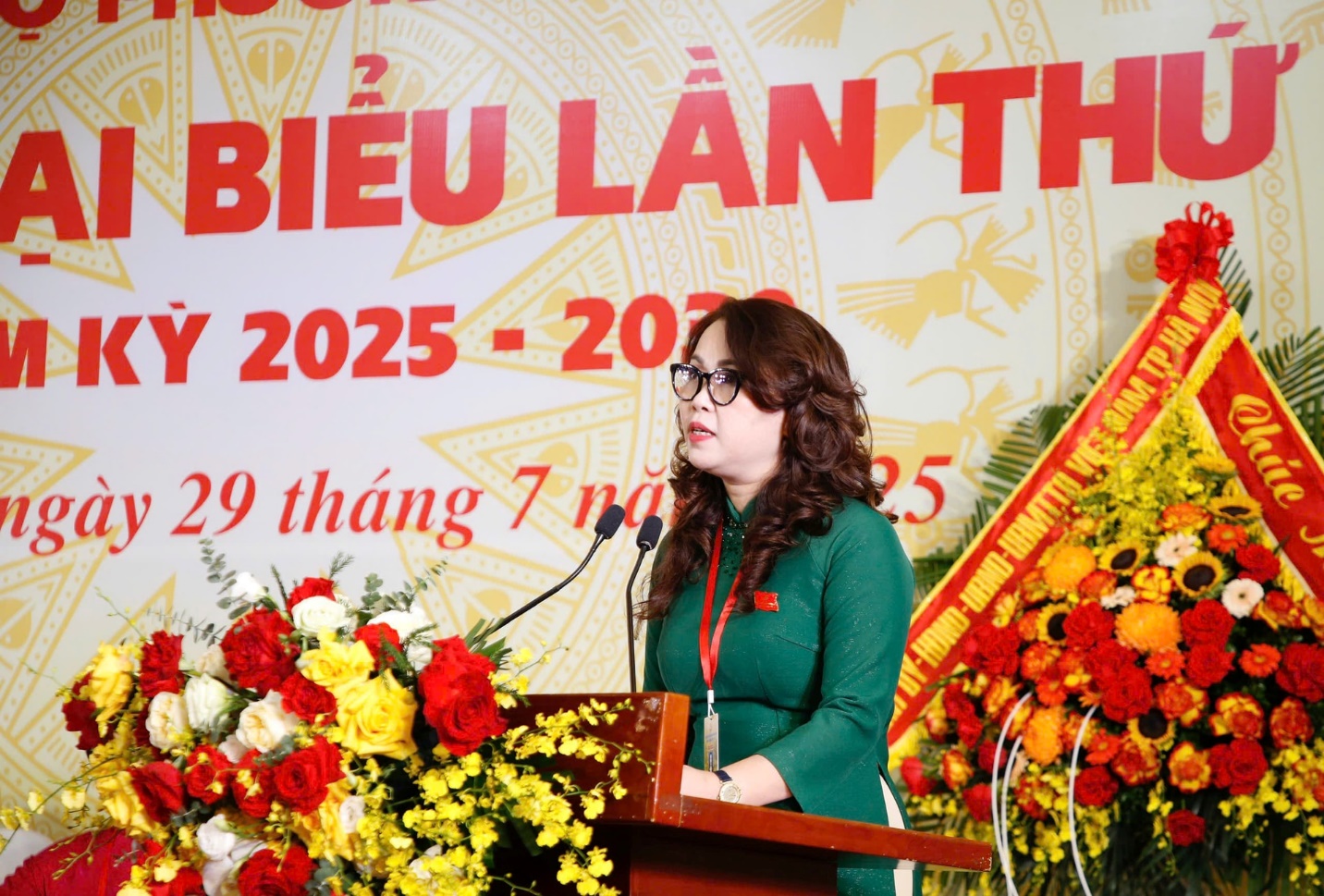 Phó Bí thư Thường trực Đảng ủy phường Ba Đình Nguyễn Thị Minh Hồng trình bày báo cáo chính trị tại đại hội