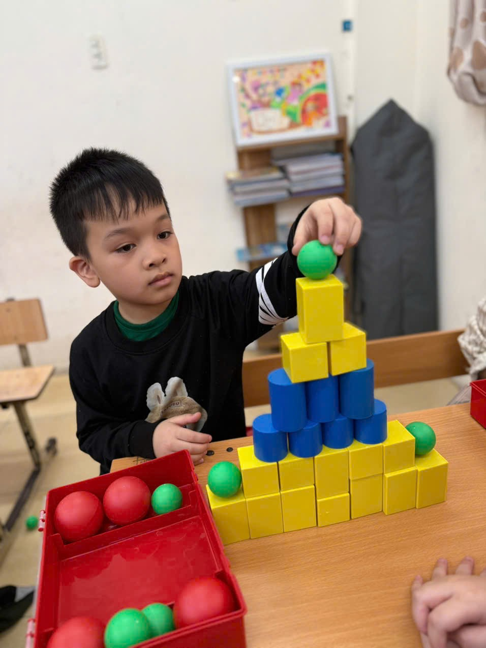 Theo nhóm, các con học sinh cùng nhau thảo luận, phân công nhiệm vụ và bắt tay vào xây dựng “công trình” của mình. Từ những khối hình đơn giản, các “kỹ sư nhí” đã sáng tạo nên nhiều mô hình độc đáo: tòa tháp cao tầng, cổng thành vững chắc, hay những hình dáng ngộ nghĩnh đầy tưởng tượng. Trong quá trình thực hiện, các em biết điều chỉnh, sắp xếp hợp lý để sản phẩm không bị đổ, thể hiện sự khéo léo và tư duy logic.