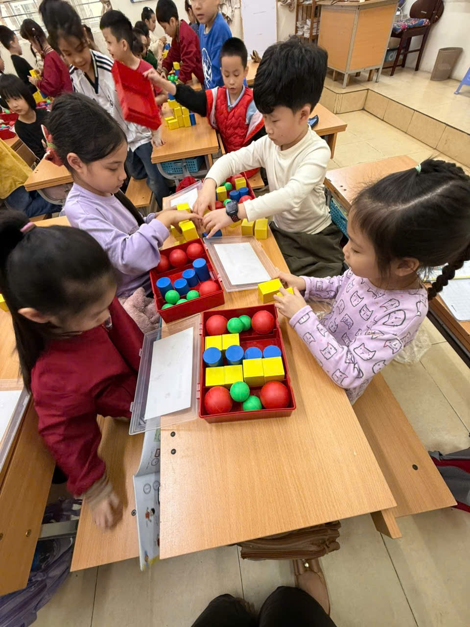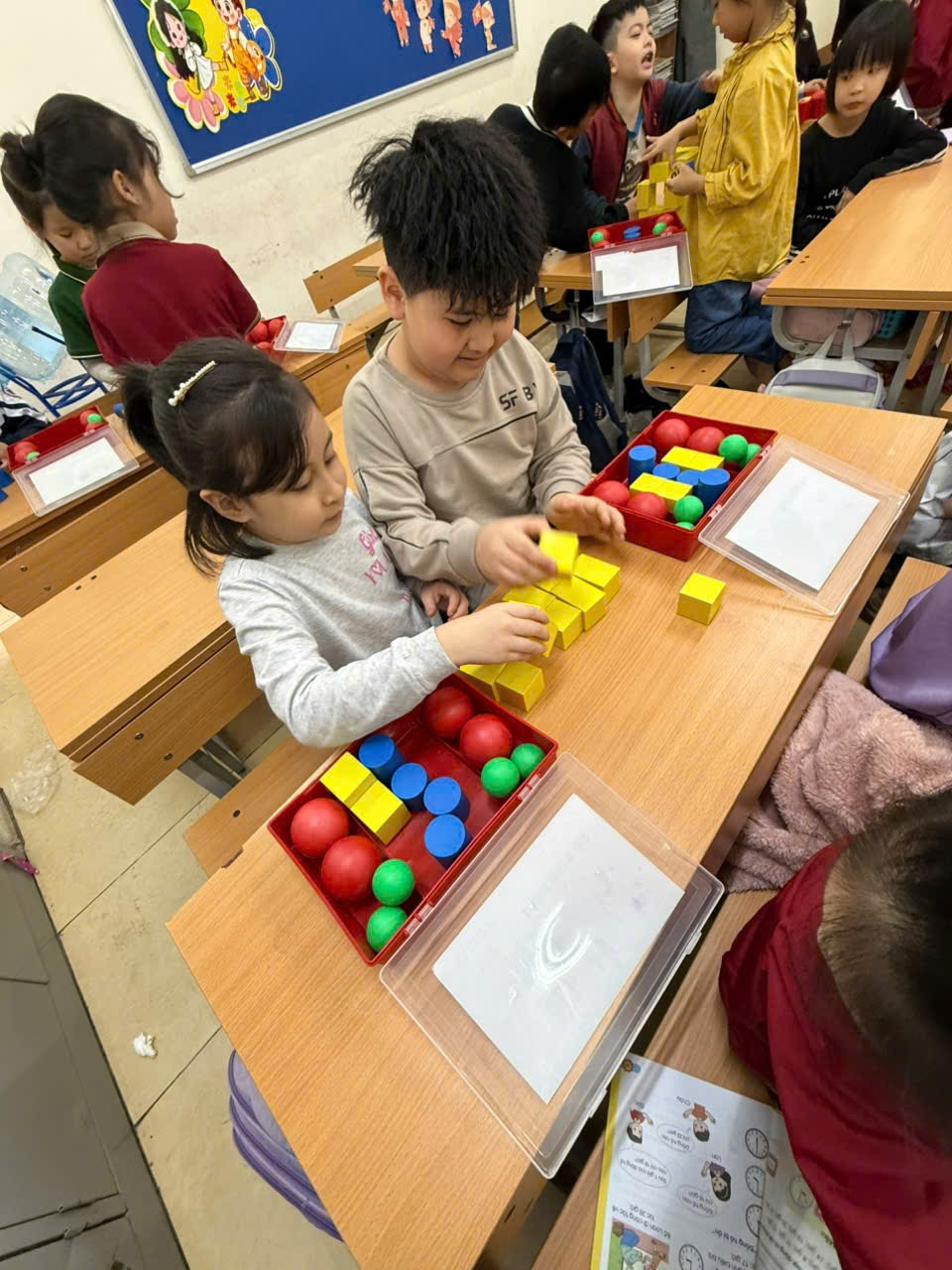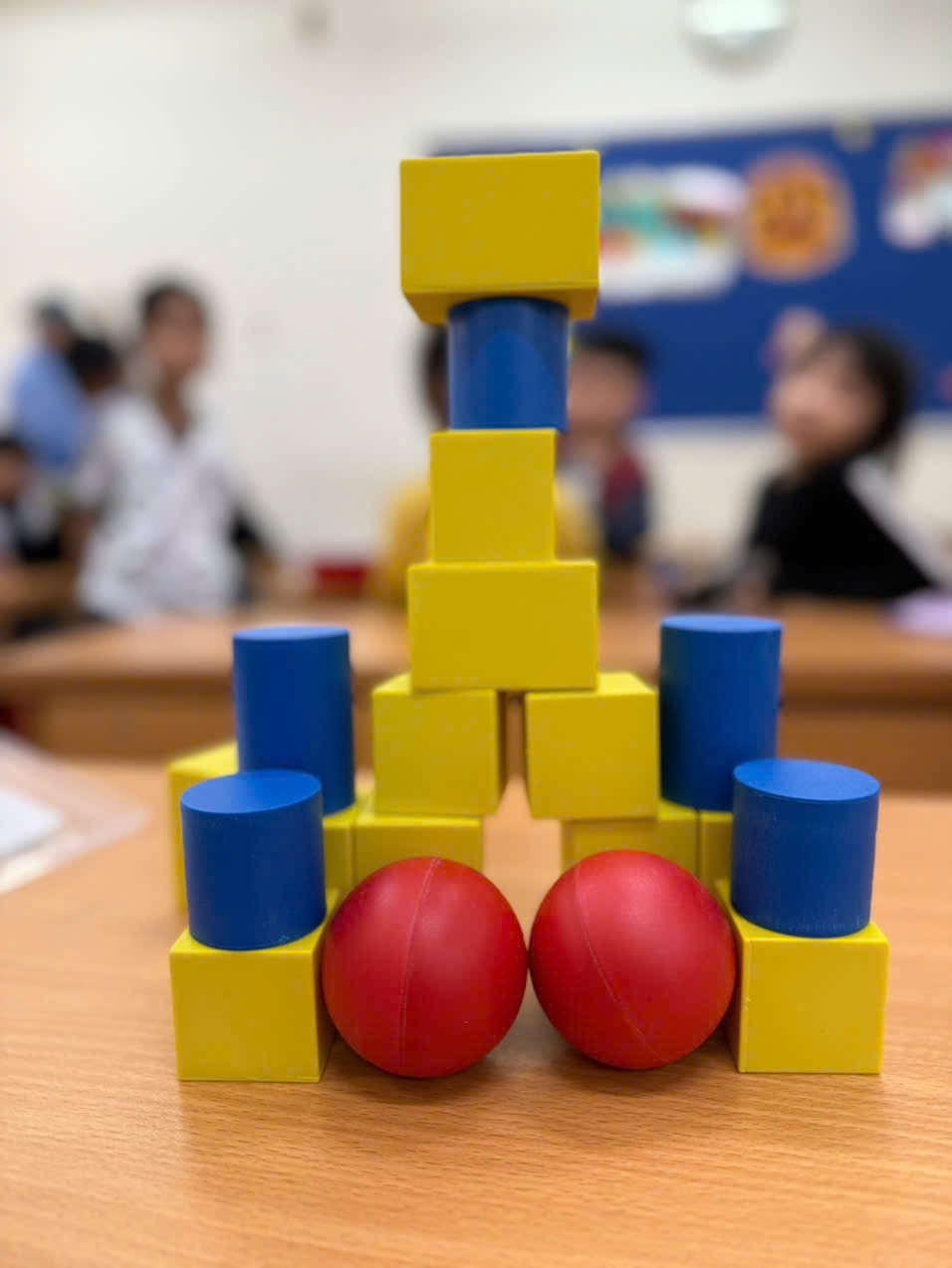Tiết học không chỉ giúp củng cố kiến thức về các hình khối quen thuộc mà còn mang đến những trải nghiệm bổ ích và tiếng cười rộn ràng.