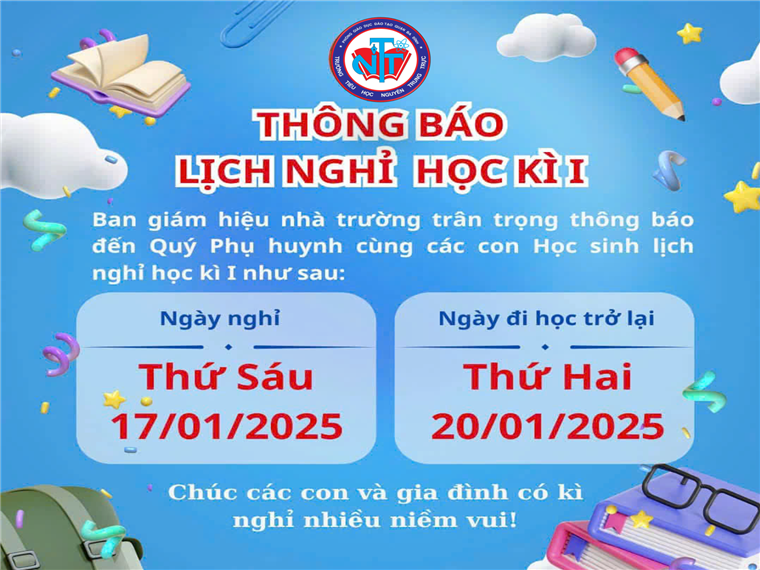 Thông báo lịch nghỉ học kì I năm học 2024 - 2025