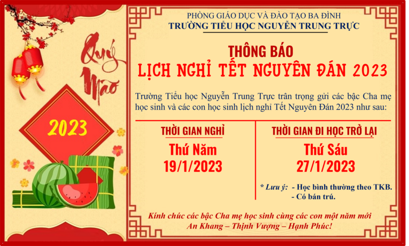 Thông báo lịch nghỉ Tết Nguyên Đán 2023