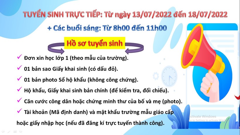 Thông báo lịch tuyển sinh trực tiếp lớp 1 năm học 2022 - 2023