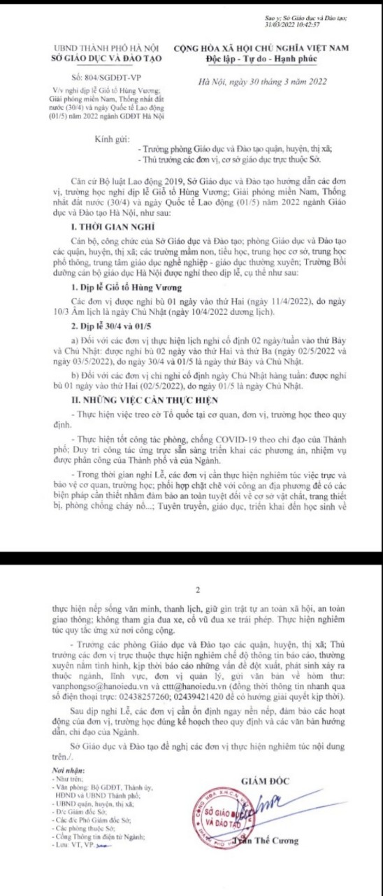 Thông báo nghỉ lễ 30 tháng 4 và mùng 1 tháng 5