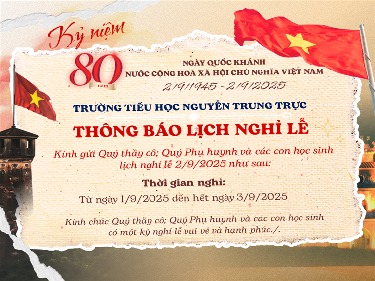 Thông báo nghỉ Lễ kỉ niệm 80 năm Cách mạng Tháng 8 và Quốc khánh 2/9