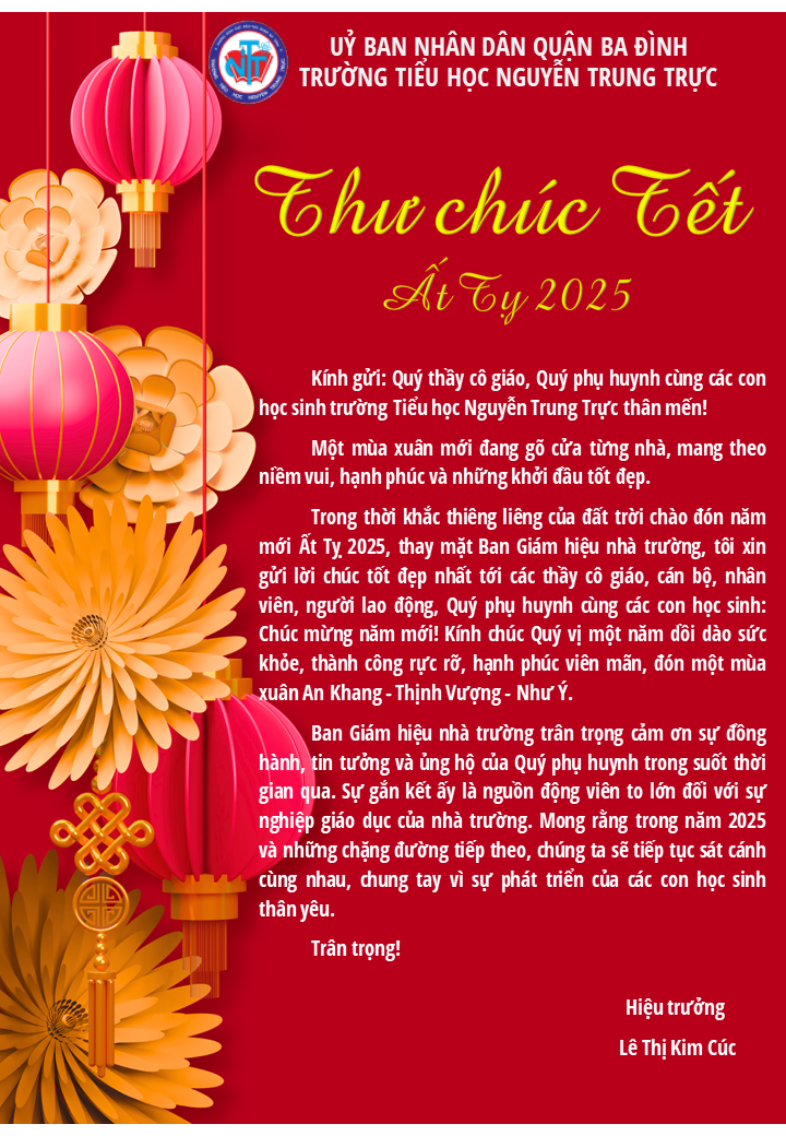 Thư chúc Tết của Hiệu trưởng trường Tiểu học Nguyễn Trung Trực