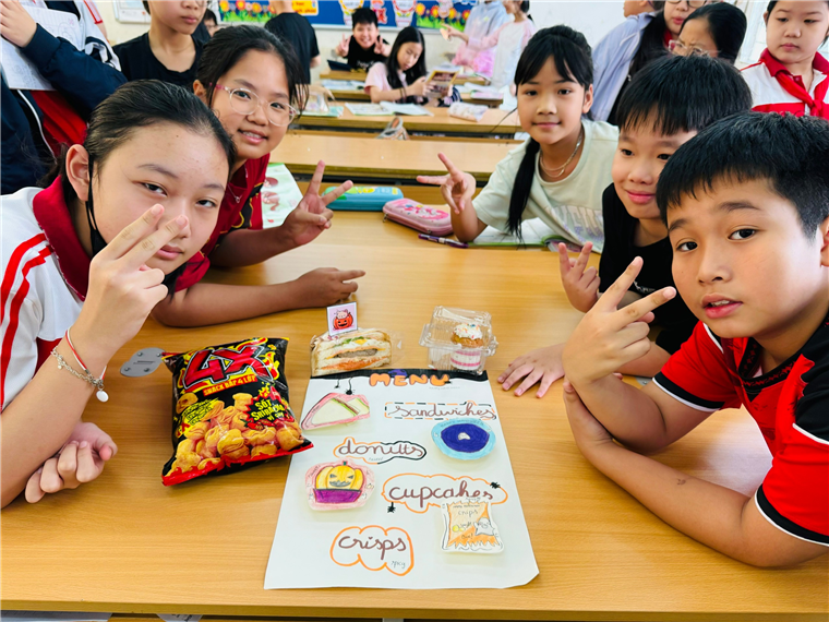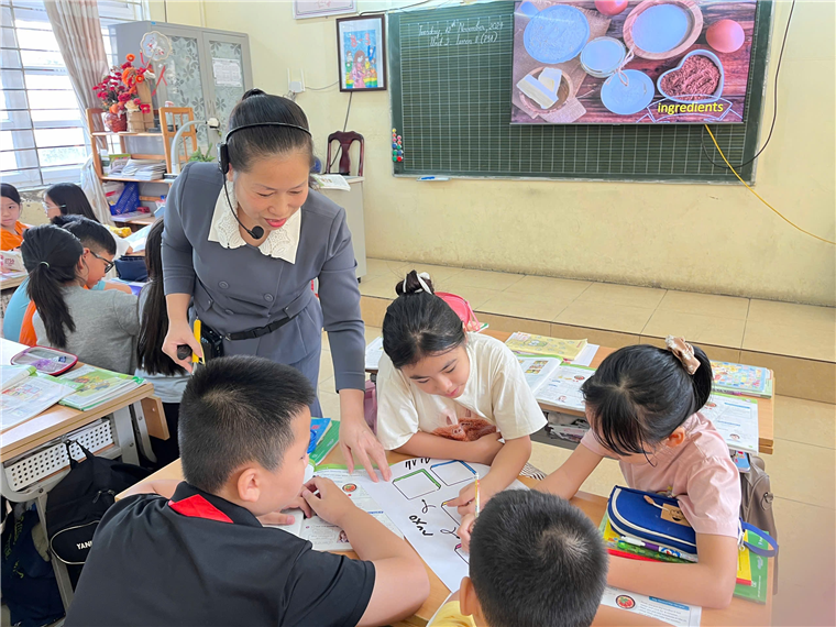 Cô Bích Hạnh chia sẻ: Theo Chương trình giáo dục phổ thông các tiết học Dự án, Trải nghiệm đặc trưng bộ môn nhằm tạo môi trường thực tế cho học sinh học tập môn học, để từ đó các em tiếp thu từ mới, cấu trúc câu dễ dàng hơn và thấm ngôn ngữ một cách tự nhiên. Hình thức học thông qua trải nghiệm còn giúp học sinh phát triển các kĩ năng vận động, làm việc theo nhóm, thuyết trình. Đồng thời, thông qua các tiết học trải nghiệm tiếng Anh, các em học sinh có cơ hội được phát triển các kĩ năng trong các môn học khác như Kĩ năng công dân số, Mỹ thuật, Âm nhạc, …