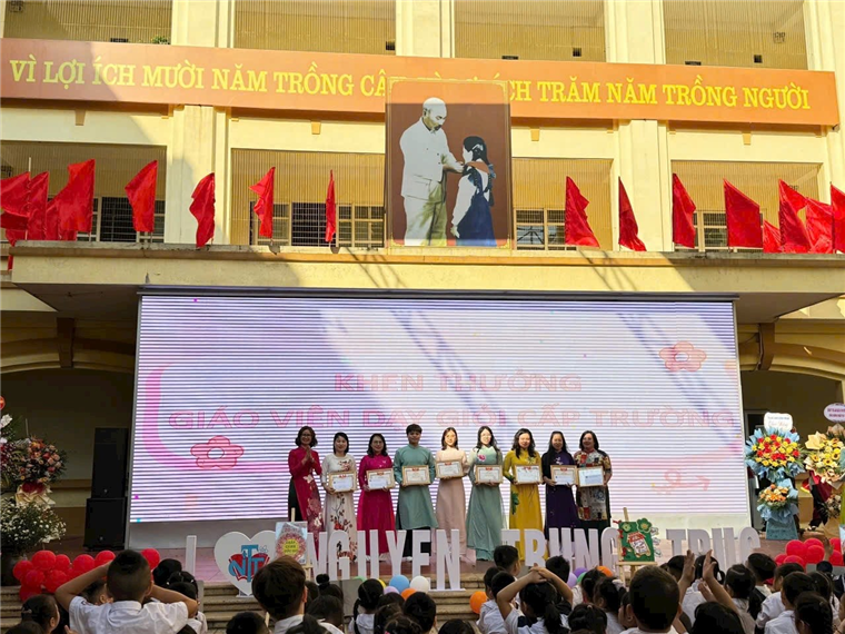 Cô Bích Hạnh nhận Giấy khen của nhà trường cho tiết dạy Hội giảng