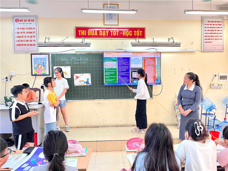 Trong năm học 2024-2025 với bộ sách giáo khoa Tiếng Anh 5 mới theo CT GDPT 2018 cô giáo cũng tìm tòi nghiên cứu dạy học thông qua trải nghiệm đồng thời tích hợp liên môn và Kĩ năng công dân số. Tiết học đã tạo nên một chuỗi hiệu ứng phản hồi tích cực, hiệu quả từ học sinh tới phụ huynh.