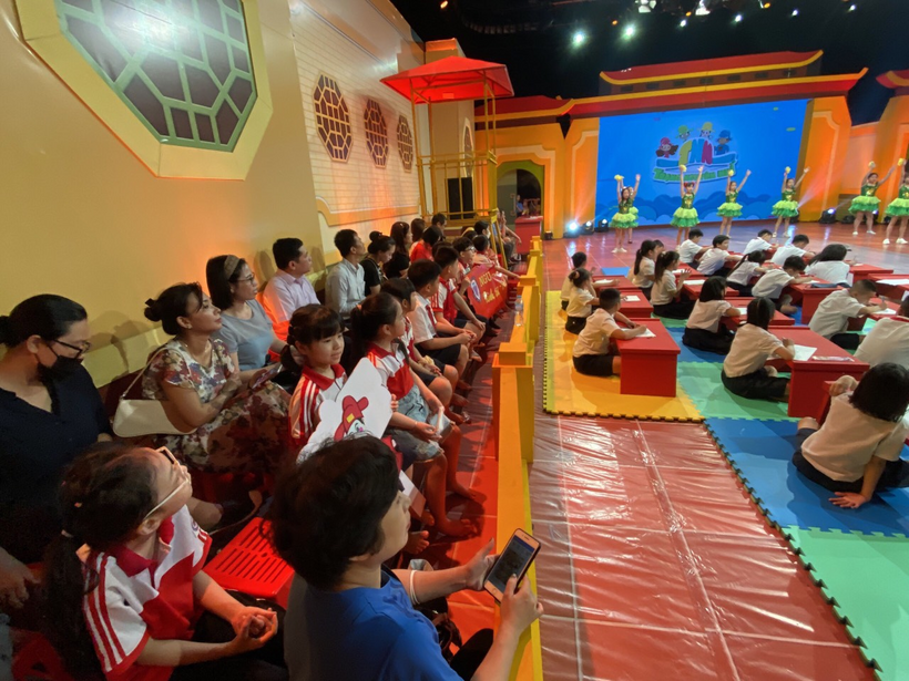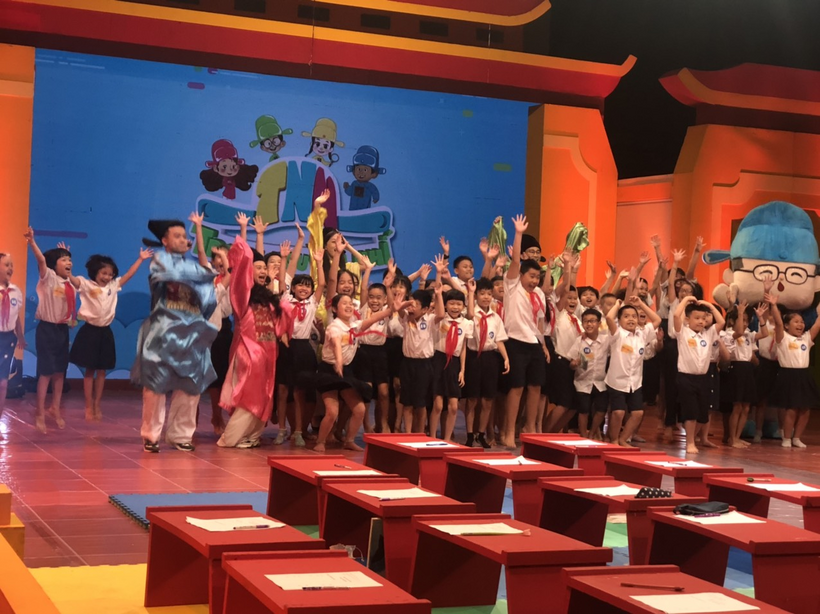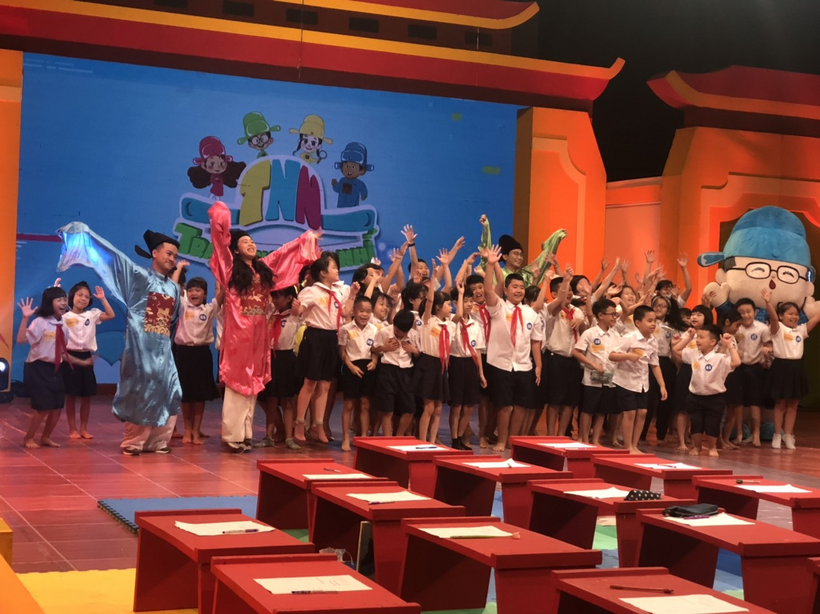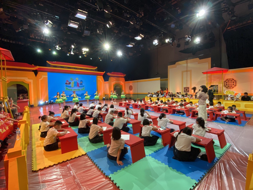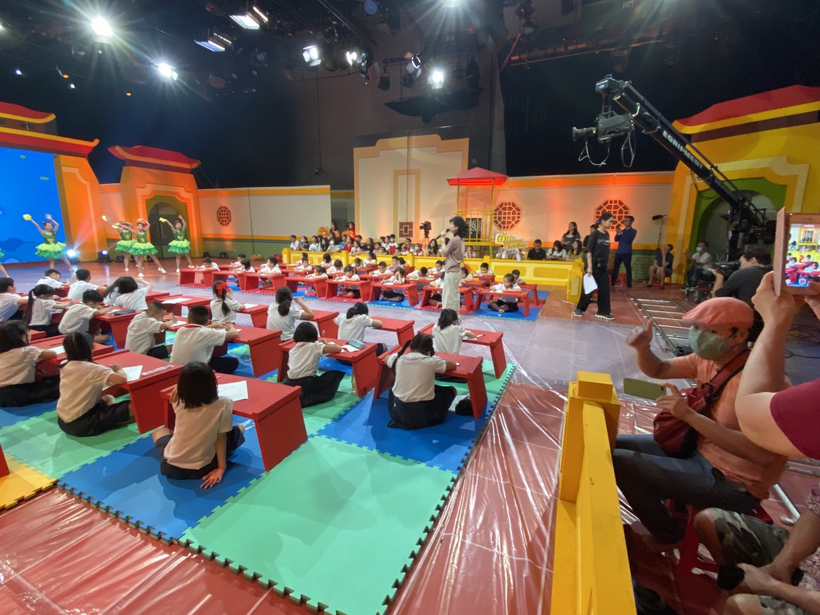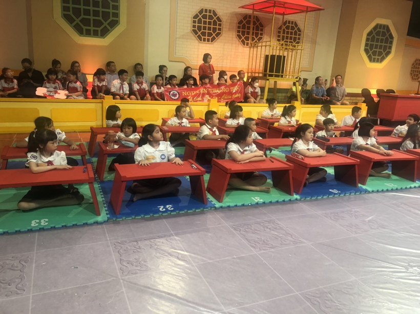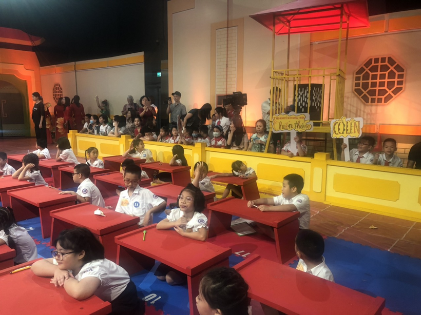 Sáng nay Hà Nội mưa khá to, đường đến trường quay Trạng nguyên nhí cũng khó khăn hơn, nhưng tại trường thi, các con học sinh và các vị phụ huynh vẫn có mặt rất đông để theo dõi và cổ vũ cho phần thi của các bạn học sinh trường Tiểu học Nguyễn Trung Trực.