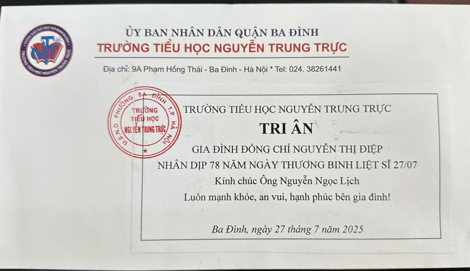 Xin kính chúc các bác, các đồng chí và gia đình luôn mạnh khỏe, hạnh phúc, tiếp tục phát huy truyền thống quý báu của gia đình, cùng nhà trường nuôi dưỡng những thế hệ học trò giàu lòng biết ơn và trách nhiệm với quê hương, đất nước.