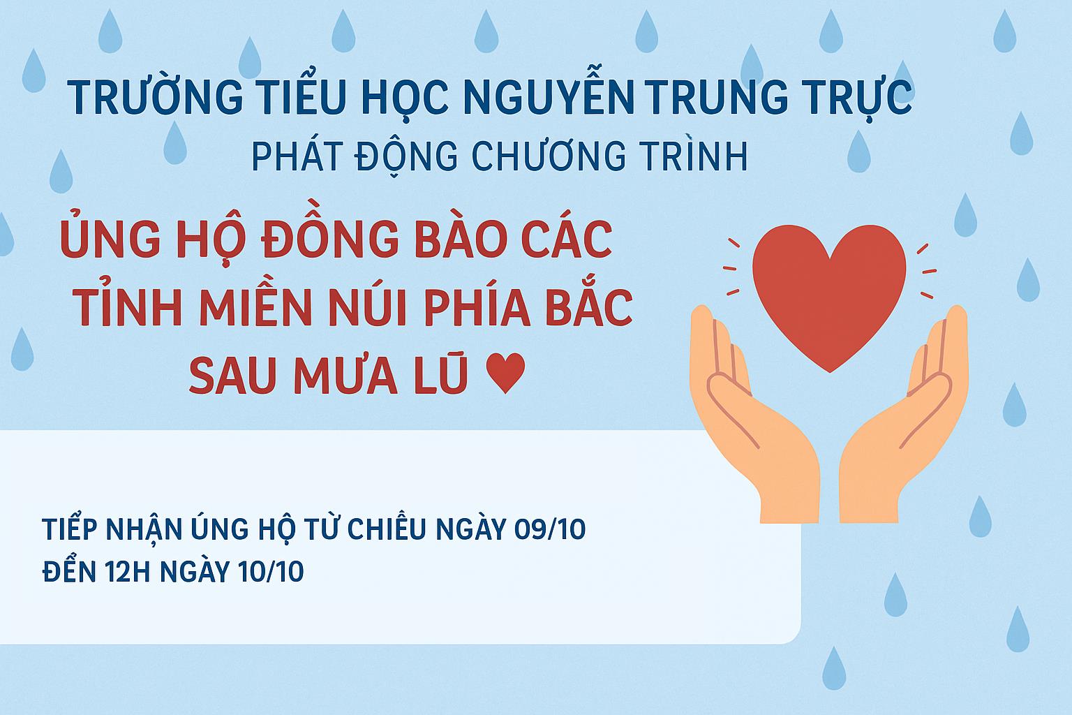 Trường Tiểu học Nguyễn Trung Trực phát động chương trình ủng hộ đồng bào các tỉnh miền núi phía Bắc sau mưa lũ